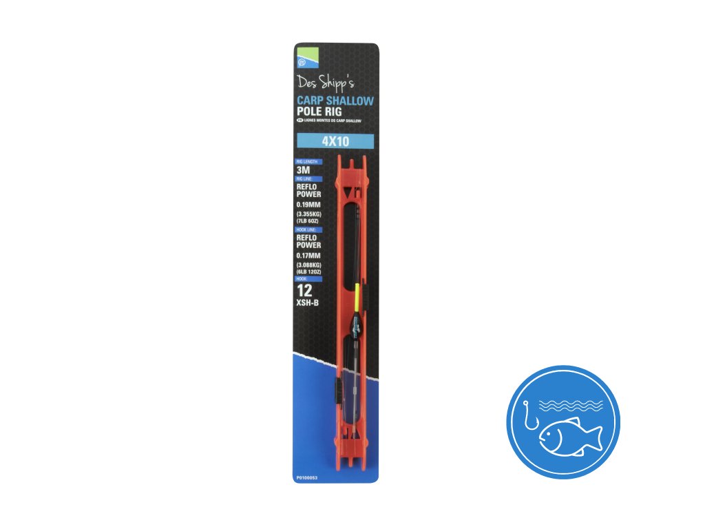 Navázané udicky vytvoreny z nejjemnejích komponentu a zaloených na osvedcených návazcích naich vlastních konzultantu Des Shipp Commercial carp pole float rigs jsou ideální pro iroké spektrum lovu na delicku.Splávky jsou vybaveny novým postranním ockem Dura díky kterému jsou mnohem odolnejí ne jakékoliv jiné splávky se standardním postranním ockem to ve pri zachování skvelé stability splávku ve vode. Vlasec Reflo Power je léty proverená kvalita doplnená o populární hácky XSH-B které jsou ideální pro lov vech kaprovitých ryb a stejne tak iroké spektrum nástrah. Jako závaí jsou pouity brocky STOTZ.Carp Shallow Pole Float má 2mm dutou anténku a sklolaminátový drík ideální pro lov na melkých vodách nebo poblí ostrovu.Rozloení závaí je ideální pro perfektní detekci i tech nejjemnejích záberu. Hácek XSH-B velikosti 12 je pak ideální pro pelety luncheonmeat kukurici íaly ci testo.Doplňkové parametry