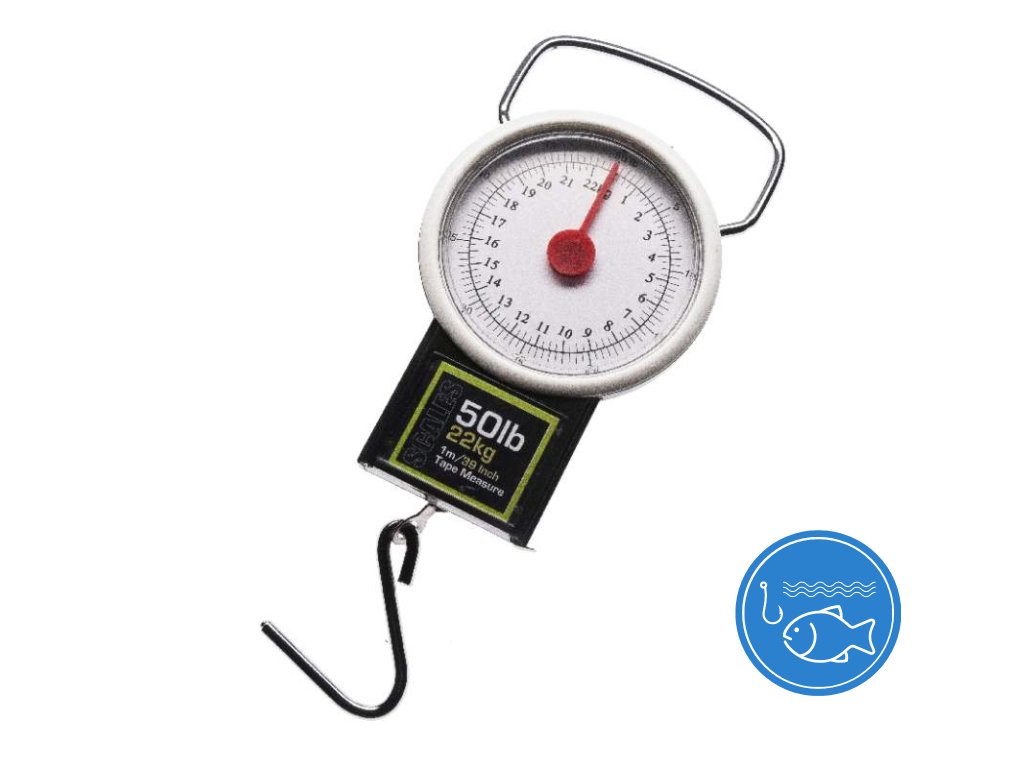 Mechanická váha pro vážení ryb. Váha je vybavena přehledným numerickým ciferníkem do 22kg a její součástí je metr. Váha má mechanické držadlo s pevným kovovým hákem.