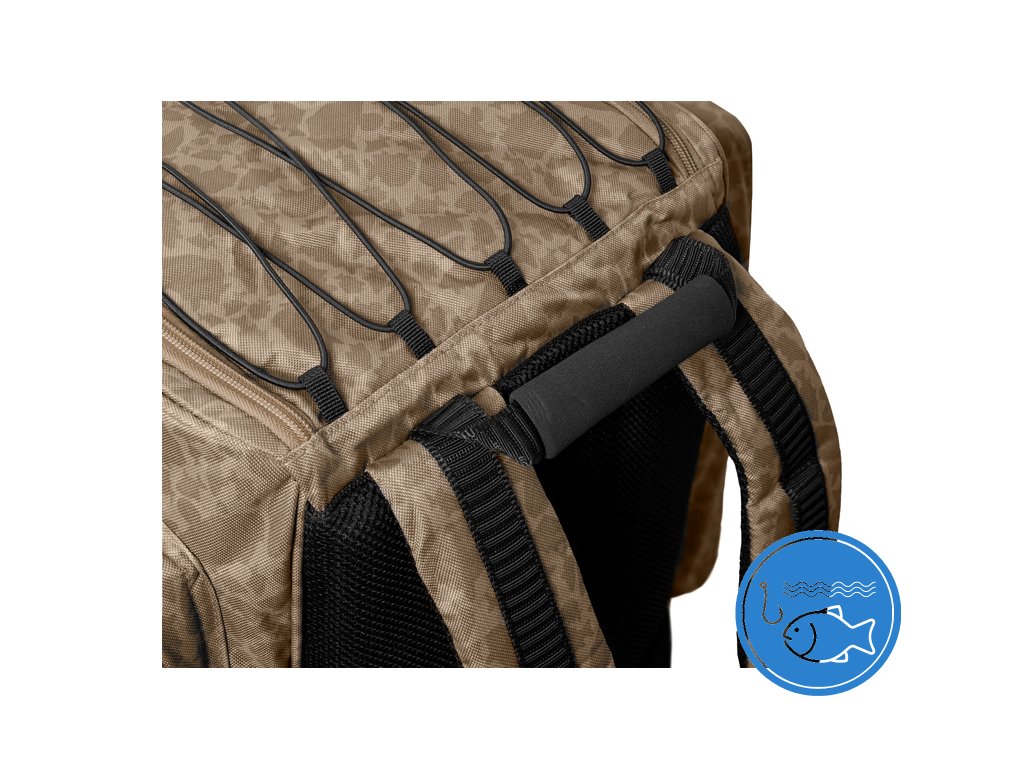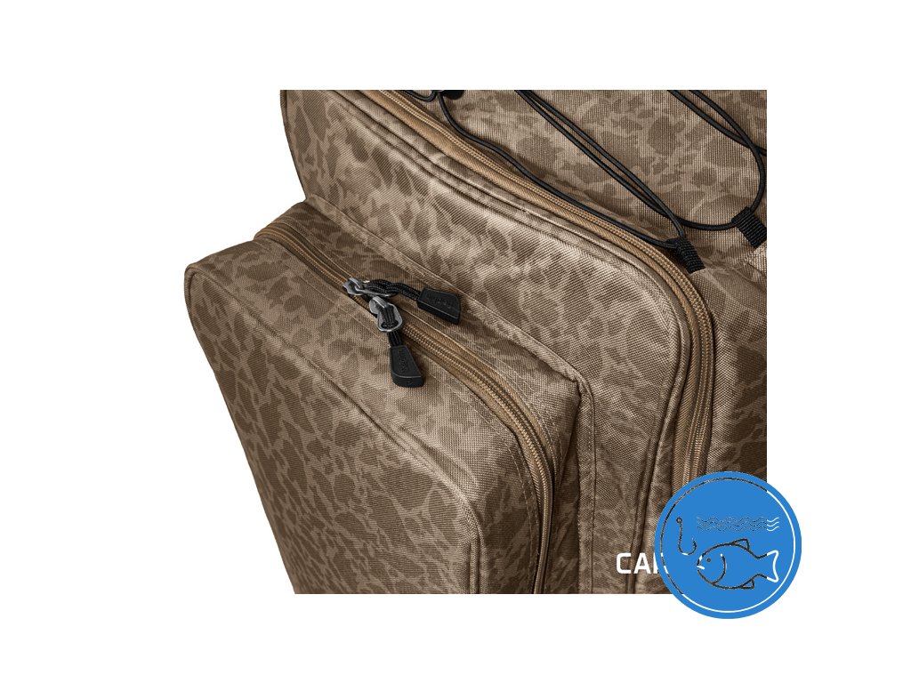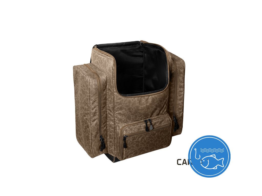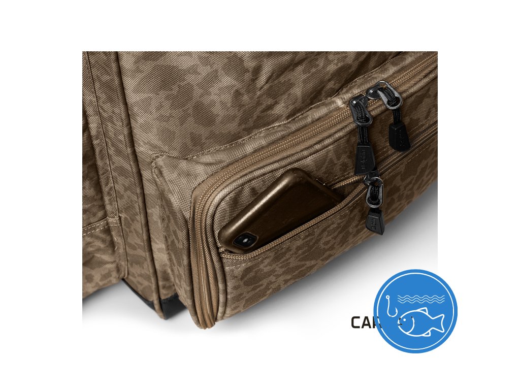 Delphin AREA Carper je velmi praktický rybářský batoh, který byl navržen s ohledem na praktické využití tak, aby do něj mohli rybáři vkládat všechny potřebné věci a následně je odnést na zádech. Mnozí z vás se musí přemístit na svůj hotspot pěšky i několik kilometrů. A přesně tento batoh vám to umožní. Co se týče komfortu nošení, tak má batoh polstrovanou zádovou část s logem Delphin, polstrované ramenní popruhy s hrudním popruhem a také má polstrovaný úchop na ruku z EVA pěny. Naprojektovaný byl s důrazem na praktičnost, trvanlivost a odolnost vůči nepříznivým povětrnostním vlivům. Taška je ze všech stran osazena 6mm polstrováním pro maximální ochranu vašeho příslušenství uvnitř. To přispívá k tomu, že batoh je mimořádně stabilní a drží si svůj tvar. Celá spodní část batohu je osazena vyztuženou, 5cm vysokou, nepromokavou vrstvou, která dovoluje položení batohu na mokrý povrch. To ještě více přispívá k tomu, že taška je také na spodní straně mimořádně stabilní a drží si svůj tvar. Na obou stranách se nacházejí dvě objemné kapsy. Vepředu se nachází jedna menší dvoukapsa. Batoh je vybaven kvalitními zipy. Vnější zipy jsou opatřeny plastovými taháčky. Design tašky doplňuje naše jedinečná hnědá CARPATH kamufláž se siluetami kaprů. Technické parametry: Batoh XL: Celkový rozměr včetně kapes ŠxVxH: 45x45x30cm Rozměr hlavní části batohu ŠxVxH: 25x45x25cm Rozměr přední kapsy ŠxVxH: 20x15x4cm Rozměr boční kapsy ŠxVxH: 20x38x7cm Batoh XXL: Celkový rozměr včetně kapes ŠxVxH: 50x55x35cm Rozměr hlavní části batohu ŠxVxH: 30x55x30cm Rozměr přední kapsy ŠxVxH: 30x20x5cm Rozměr boční kapsy ŠxVxH: 25x45x10cm Kamufláž CARPATH je unikátním a patentovaným designovým vzorem, který v sobě skloubil maskovací vizuál kamufláže a siluety kaprů, které tuto kamufláž tvoří. Tento jedinečný a neopakovatelný návrh pochází kompletně z dílny značky Delphin a posouvá hranice vašeho rybářského vybavení do zcela nové dimenze.Doplňkové parametry