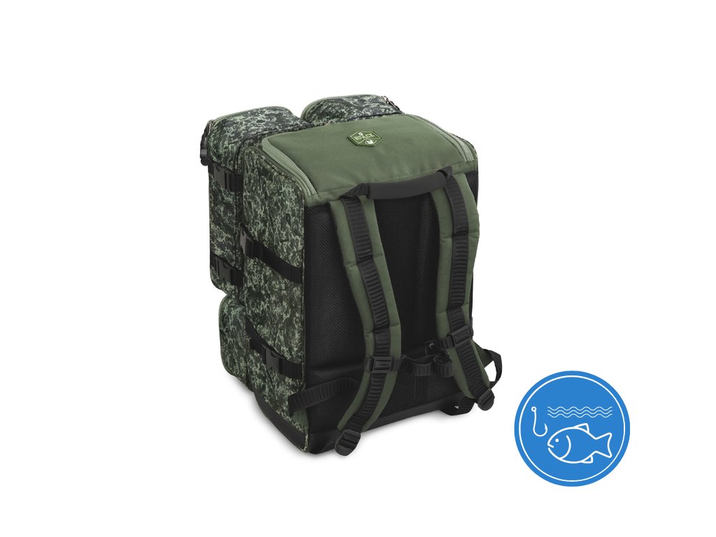 Delphin SPACE je označení pro exkluzivní sérii tašek z dílny značky Delphin. Vyznačuje se špičkovým zpracováním, kvalitními zipy, ale zejména výjimečným designem s použitím C2G kamufláže. Unikátní, výjimečný, nepřehlédnutelný - jedním slovem BLOKZ. Ano, to je batoh navržený společností Delphin, který na první pohled zaujme svým provedením a variabilitou. Podle stylu rybaření si sami zvolíte objem batohu, který si s sebou vezmete. Je možné jej nakonfigurovat od 30, až do neuvěřitelných 55 litrů, což znamená, že jeho objem umíte téměř zdvojnásobit! Tak jak napovídá jeho název, skládá se z několika „bloků“, které dohromady tvoří jedinečný celek. V základu BLOKZ se skládá z hlavní části – univerzálního batohu, na kterém jsou upnuty v přední části tři velké samostatné tašky/kapsy v exkluzivním C2G designu. Každá z nich má objem 5 litrů. Samotná kapsa BLOKZ uvnitř disponuje nastavitelnou/odnímatelnou přihrádkou, díky které budete mít ve svých věcech větší přehled a řád. Všechny tyto kapsy jsou opatřeny klipy, kterými je lze mezi sebou propojit, díky čemuž drží spolu s batohem velmi kompaktně jako celek o objemu 45 litrů. Mysleli jsme však i na ty, kteří sebou nosí k vodě opravdu velké množství výbavy. Batoh je po bocích opatřen univerzálními popruhy s klipy, na které lze připnout další dvě kapsy BLOKZ, které lze zvlášť dokoupit. Možné je i využít těchto bočních popruhů k uchycení částí výbavy či oblečení. Takto lze získat opravdu luxusní prostor pro transport rybářských potřeb. Samotné tělo batohu poskytuje objem 30 litrů a svým stylovým provedením si najde uplatnění i při běžném nošení či turistice. Uvnitř batohu se nachází odepínatelná přihrádka, která umožňuje v případě potřeby předělit vnitřní prostor na dvě části – vrchní a spodní. Své věci si tak můžete uspořádat opravdu přehledně, případně si snadno oddělíte např. jídlo a oblečení od rybářských potřeb. Samotný batoh disponuje až třemi plnohodnotnými vstupy, zajišťujícími dokonalý přístup do každé části! Díky nim snadno sbalíte do batohu vše potřebné pro vaše expedice. Pokud patříte mezi aktivní a praktické rybáře, kteří často potřebují přepravit svou výbavu na vzdálené místo, tak BLOKZ se stane vaším nenahraditelným pomocníkem. Technické parametry: Celkový rozměr včetně kapes ŠxVxH: 55cm x 45cm x 32cm Rozměr hlavní části batohu ŠxVxH: 31cm x 45cm x 22cm Rozměr upnutých tašek ŠxVxH: 15cm x 32cm x 11cm Stylová patentovaná kamufláž z dílny značky Delphin pod označením C2G má mnoho podob a úhlů pohledu. Přesně tak i její název, který můžeme volně přeložit jako Carpath 2. generace, což přímo odkazuje na jejího předchůdce, ale můžeme ho číst i jako Carpath to Green, tedy přechod myšlenky Carpathu do zelené barvy. Její jedinečnost a nezaměnitelnost spočívá v prvcích, ze kterých je vytvořena. Na první dojem jde o kamufláž tvořenou třemi různými odstíny zelené. Všechno se však změní při detailnějším pohledu, kdy si všimnete siluety kaprů, komponentů kaprařské montáže a log značky Delphin spolu s označením C2G. Díky tomuto neopakovatelnému provedení se vaše rybářská výbava okamžitě stane jedinečnou a maximálně originální.Doplňkové parametry