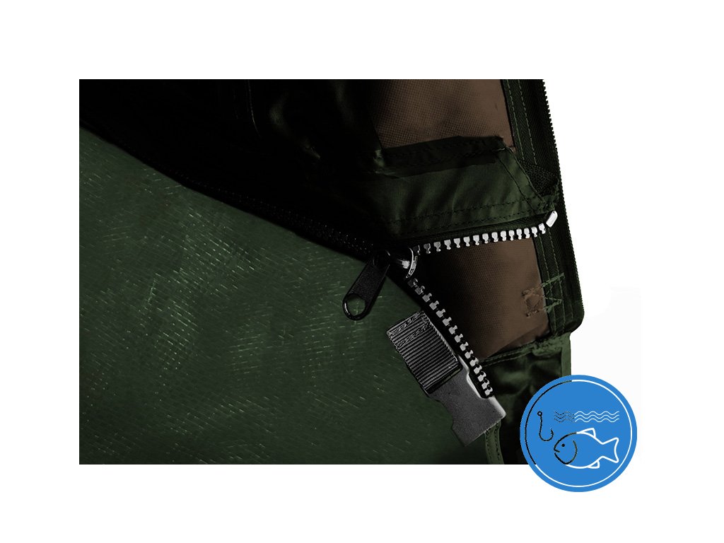 Vlajková loď v segmentu bivaků od společnosti Delphin. To je bivak C-3 LUX CARPATH, který je určen těm nejnáročnějším rybářům mezi námi. Extra pevná garážová konstrukce se třemi žebry zaručuje nekompromisní stabilitu v jakýchkoliv povětrnostních podmínkách. Spolu s použitou látkou nejvyšší kvality a kompletně podlepenými švy odolá i silným bouřím, větru a vydatnému množství srážek. Nespornou předností bivaku je látka s oblíbeným vzorem CARPATH, což určitě nadchne všechny příznivce této originální kamufláže. Díky rozměrům bivaku se do něj bez problémů vejdou 2 lehátka, přičemž stále zůstane uvnitř velkorysý prostor pro pohyb, ale také na tašky a další komponenty výbavy potřebné pro pohodlný pobyt u vody. V případě potřeby pojme vnitřní prostor dokonce až 3 lehátka. Samozřejmostí jsou také dva úchyty na zafixování prutů, ale také velký kšilt, který poskytuje ochranu před sluncem či deštěm. Uvnitř jsou na stropě bivaku navíc umístěny 2 háčky, na které je možné zavěsit například lampu. Bivak C-3 disponuje inovativním systémem CLIMA CONTROL, který byl navržen designérským oddělením značky Delphin. Tento systém je tvořen dvěma větráky na protilehlých stranách (nad vstupními dveřmi a nad zadním oknem). Díky tomuto důmyslnému systému lze zajistit cirkulaci vzduchu ve vnitřním prostoru bivaku v době, kdy není možné větrat pomocí velkých oken. Určitě ho oceníte zejména v noci, kdy výrazně napomáhá snižovat kondenzaci na vnitřních stěnách. Celý systém je navíc jednoduše ovladatelný zevnitř bivaku. K bivaku C-3 je možné dokoupit sadu předních plastových překrytí oken (které jsou standardně moskytiérové s látkovým překrytím), v transparentním provedení. Také je možnost zakoupení přehozu, který zvýší tepelný odpor, a tím i izolační vlastnosti samotného pláště. Bivak má v balení automaticky základní podlahu, která je fixována kvalitním zipem po celém obvodu bivaku. Odteď nehrozí nechtěné návštěvy hlodavců, či nečistoty pronikající do bivaků! C-3 LUX CARPATH je bivak bez kompromisů, který uspokojí i ty nejnáročnější rybáře a díky kterému bude každý pobyt u vody maximálně komfortní. Technické parametry: Vnější rozměr: 300x320x175cm Výška bivaku: 175cm Délka kšiltu: 60cm Transp. rozměry bivaku: 130x30x30cm Hmotnost bivaku: 13kg Transp. rozměry přehozu: 60x20x20cm Hmotnost přehozu: 4kgDoplňkové parametry