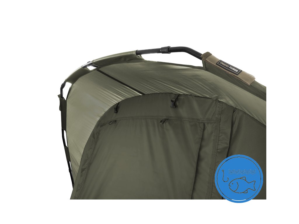 Delphin PANORAMA OneMAN je cenově dostupný, ale maximálně funkční bivak, určený pro jedno lehátko. Je ideální volbou pro rybáře, kteří vyrážejí na své výpravy převážně sami, případně nechtějí s sebou k vodě nosit rozměrově velké a těžké bivaky. Základním pilířem pro návrh tohoto bivaku byla jeho větší verze - PANORAMA TwoMAN, který se vyznačuje netradičním, ale zato velmi praktickým řešením. Proto jsme iu modelu OneMAN nahradili klasický úzký vchod a dvě okna, která znáte z většiny bivaků, ultra širokým vchodem, který má několik podstatných výhod. Zachovává totiž dokonalý rozhled na situaci kolem bivaku, jako kdybyste měli na přední části obě okna. Navíc lze bivak mnohem rychleji provětrat (součástí bivaku je i zadní okno) a také v případě nutnosti uzavřít. Vkládání a vyjímání lehátek je nyní o level jednodušší! Dvoužebrová konstrukce bivaku je tvořena hliníkovými trubkami, které do sebe dokonale zapadají a vytvářejí velmi pevný základ. Spolu s použitým, kvalitním materiálem tak PANORAMA Eazy OneMAN představuje spolehlivý a stabilní bivak, který bezpochyby zvládne i silný vítr či velký úhrn srážek. K tomu všemu přispívají také kompletně podlepené a následně testované švy. Svým rozměrem je bivak ideální pro jedno lehátko, přičemž zůstane dostatečně velký prostor pro taškovinu rybáře. Pokud máte rádi menší místa kde se nevejdou velké bivaky tak pak je bivak PANORAMA OneMAN ukázkovým partnerem na rybaření. Díky malým transportním rozměrům nebude problém bivak přenést i na odlehlejší místa, kde se autem nedostanete. Velkou výhodu bivaku tvoří i přední kšilt, který není jako samostatný díl, ale vytváří jej první žebro konstrukce. Na předním kšiltu jsou umístěny dva FIXRODY usnadňující manipulaci s pruty. V balení je bivak dodáván spolu se základní podlahou, kterou lze po obvodu ke stěnám upnout pomocí suchých zipů. Za účelem pohodlného transportu dostanete k bivaku praktické přenosné pouzdro s pevnými rukojeťmi. Technické parametry: Vnějšek. rozměr: 215x250 cm Výška bivaku: 145 cm Délka kšiltu: 30 cm Transp. rozměry bivaku: 100x20x17cm Hmotnost bivaku: 6,4kgDoplňkové parametry