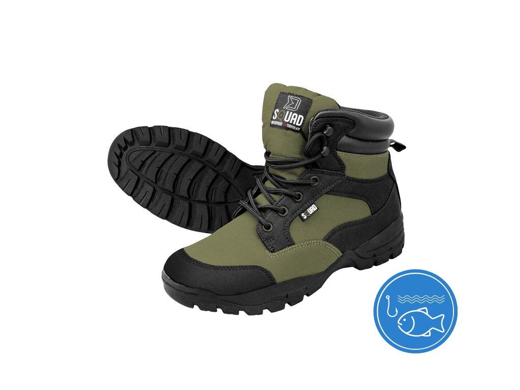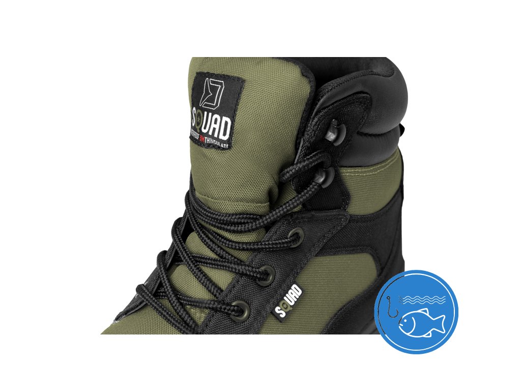 Boty Delphin SQUAD byly navrženy tak, aby byla dosažena maximální možná voděodolnost, zároveň prodyšnost a tepelný komfort. SQUAD jsou tedy velmi pohodlnou obuví při delším stání či sezení při čekání na záběr, jsou však stejně pohodlné při procházkách kolem revírů či v horách. Na povrchu je použita velmi pevná tkanina, která dobře odolává vodě, ale i ostrým předmětům. Pryžová podrážka neklouže, hrubý dezén napomáhá při překonávání terénních překážek. Boty se šněrují přes 4 očka a 2 háčky. Jazyk je prošitý až do části s háčky, do této výšky se můžete krátkodobě pohodlně pohybovat v mokrém a vlhkém prostředí. Mezi vnější a vnitřní mikrofleecovou vrstvou se nachází izolační vrstva 3M Thinsulate, která je vyrobena ze syntetických vláken s velmi vysokou hustotou. Nepromokavost, dobrá tepelná izolace a pohodlí nošení. To jsou 3 hlavní atributy bot Delphin SQUAD. Kromě rybářů jsou velmi vhodné i pro myslivce, turisty a všechny milovníky přírody.Doplňkové parametry