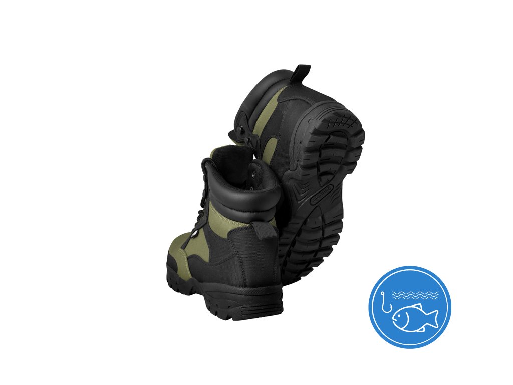 Boty Delphin SQUAD byly navrženy tak, aby byla dosažena maximální možná voděodolnost, zároveň prodyšnost a tepelný komfort. SQUAD jsou tedy velmi pohodlnou obuví při delším stání či sezení při čekání na záběr, jsou však stejně pohodlné při procházkách kolem revírů či v horách. Na povrchu je použita velmi pevná tkanina, která dobře odolává vodě, ale i ostrým předmětům. Pryžová podrážka neklouže, hrubý dezén napomáhá při překonávání terénních překážek. Boty se šněrují přes 4 očka a 2 háčky. Jazyk je prošitý až do části s háčky, do této výšky se můžete krátkodobě pohodlně pohybovat v mokrém a vlhkém prostředí. Mezi vnější a vnitřní mikrofleecovou vrstvou se nachází izolační vrstva 3M Thinsulate, která je vyrobena ze syntetických vláken s velmi vysokou hustotou. Nepromokavost, dobrá tepelná izolace a pohodlí nošení. To jsou 3 hlavní atributy bot Delphin SQUAD. Kromě rybářů jsou velmi vhodné i pro myslivce, turisty a všechny milovníky přírody.Doplňkové parametry