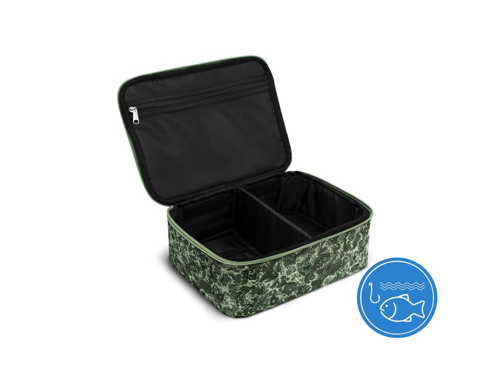 Delphin SPACE je označení pro exkluzivní sérii tašek z dílny značky Delphin. Vyznačuje se špičkovým zpracováním, kvalitními zipy, ale zejména výjimečným designem s použitím C2G kamufláže. Polstrované pouzdro na navijáky, ve kterém budou vaše poklady v naprostém bezpečí. Toto pouzdro je určeno buď pro dva menší navijáky, kdy je posouvatelná přepážka ve středu, nebo pro jeden velkokapacitní naviják, kdy je přepážka u kraje a odděluje naviják a náhradní cívky. Díky posouvatelné přihrádce dostáváte neomezené možnosti při tvorbě a využití vnitřního prostoru. Součástí této příruční tašky je samozřejmě madlo do ruky a vnitřní síťovaná kapsa. Přestože pouzdro je primárně navrženo pro uložení a transport navijáků, je možné jej využít i na jiné rybářské příslušenství. Technické parametry: Rozměr tašky: 33x25x12cm Vnitřní síťovaná kapsa: 28x22cm Stylová patentovaná kamufláž z dílny značky Delphin pod označením C2G má mnoho podob a úhlů pohledu. Přesně tak i její název, který můžeme volně přeložit jako Carpath 2. generace, což přímo odkazuje na jejího předchůdce, ale můžeme ho číst i jako Carpath to Green, tedy přechod myšlenky Carpathu do zelené barvy. Její jedinečnost a nezaměnitelnost spočívá v prvcích, ze kterých je vytvořena. Na první dojem jde o kamufláž tvořenou třemi různými odstíny zelené. Všechno se však změní při detailnějším pohledu, kdy si všimnete siluety kaprů, komponent kaprařské montáže a log značky Delphin spolu s označením C2G. Díky tomuto neopakovatelnému provedení se vaše rybářská výbava okamžitě stane jedinečnou a maximálně originální.Doplňkové parametry