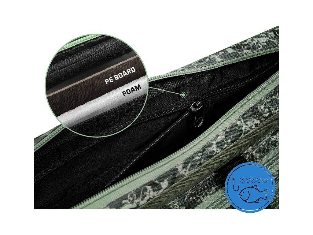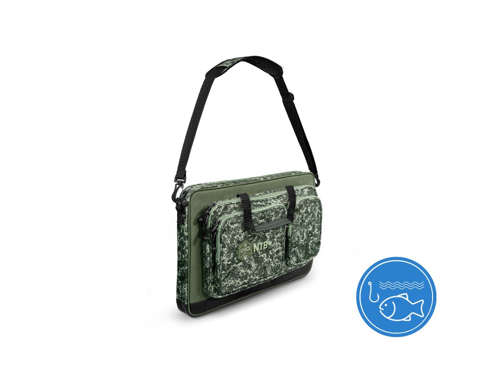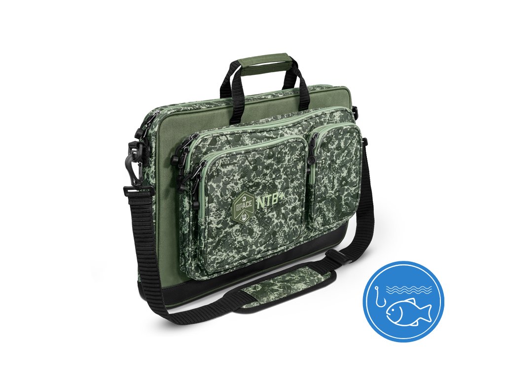 Delphin SPACE je označení pro exkluzivní sérii tašek z dílny značky Delphin. Vyznačuje se špičkovým zpracováním, kvalitními zipy, ale zejména výjimečným designem s použitím C2G kamufláže. Taška Delphin NTB+ byla navržena vzhledem k požadavkům moderní doby, kdy stále větší množství rybářů nosí s sebou k vodě notebook. Ať už ho berete kvůli pracovním povinnostem nebo zábavě, vždy je dobré jej mít během transportu důkladně chráněn. A právě pro tento účel je taška NTB+ jako stvořená. Hlavní komora tašky disponuje dostatečným místem pro uložení všech standardně prodávaných notebooků o rozměru 15,6 palců. Kromě tohoto rozměru lze do pouzdra pohodlně vložit i větší notebooky až do rozměru 17 palců, zde záleží na poměru stran a tloušťce samotného notebooku. Maximální rozměry pro notebook jsou uvedeny níže v tabulce, ale také v galerii obrázků. Díky tvrdým stěnám (PE deska všitá ve stěnách) a měkkému polstrování bude váš notebook důkladně chráněn před nárazy a nechtěným poškozením. Kromě toho se uvnitř nachází velká zipovatelná kapsa umožňující sbalit různé dokumenty. Na přední straně jsou umístěny tři kapsy, přičemž každá z nich má své nepostradatelné využití. Největší kapsa je určena speciálně na nabíječku, přičemž bez problémů pojme i nabíječky s opravdu velkými adaptéry. Dvě menší kapsy zase umožňují sbalení dodatečného příslušenství či psacích potřeb. Spodní strana tašky a boky do výšky 4 cm jsou opatřeny odolnou nepromokavou látkou, díky které se nic neděje ani pokud tašku položíte na mokrou či špinavou zem. Během transportu se o komfort stará mimořádně měkké polstrování popruhu pro zavěšení na rameno či praktické rukojeti pro nošení tašky v ruce. Technické parametry: Celkový rozměr: 43x31x5cm Vnitřní prostor pro notebook: 40.5 x 30.5 x 4.5 cm Rozměr přední velké kapsy: 36x23x4cm Rozměr přední střední kapsy: 20x18x3cm Rozměr přední malé kapsy: 10x19x3cm Stylová patentovaná kamufláž z dílny značky Delphin pod označením C2G má mnoho podob a úhlů pohledu. Přesně tak i její název, který můžeme volně přeložit jako Carpath 2. generace, což přímo odkazuje na jejího předchůdce, ale můžeme jej číst i jako Carpath to Green, tedy přechod myšlenky Carpathu do zelené barvy. Její jedinečnost a nezaměnitelnost spočívá v prvcích, ze kterých je vytvořena. Na první dojem jde o kamufláž tvořenou třemi různými odstíny zelené. Všechno se však změní při detailnějším pohledu, kdy si všimnete siluety kaprů, komponent kaprařské montáže a log značky Delphin spolu s označením C2G. Díky tomuto neopakovatelnému provedení se vaše rybářská výbava okamžitě stane jedinečnou a maximálně originální.Doplňkové parametry