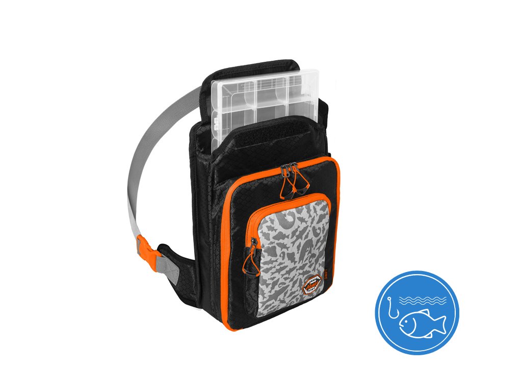 Crossbody Delphin ATAK! Swift je ideální pomocník kompaktních rozměrů učený pro vyznavače lovu na přívlač. Její velkou výhodou je, že si ji při výměně nástrahy můžete jednoduše otočit dopředu a vybrat z ní vše potřebné. Model Swift se skládá z jedné velké kapsy na suchý zip, která obsahuje jednu plastovou krabici s vyjímatelnými vnitřními příčkami. Ta je součástí tašky. Další menší kapsa na zip je určena pro uložení nástrah. Je navržena tak, aby si z ní mohl rybář pohodlně vybrat to, co potřebuje. Kapsu je možné otevřít pouze do určité polohy, a proto je i na obou stranách v rozích našitá látka, která brání vypadnutí nástrah z kapsy. Na spodní části kapsy se nachází magnet, který dokonale drží vaše příslušenství na místě. Jedna strana kapsy je opatřena silnější vrstvou profilované EVA pěny, určené pro zapichování woblerů, třpytek, plandavek nebo jigů. Na vnitřní straně se nachází také jedna malá kapsa na zip, kde je možné uložit v obalech obratlíky, karabinky, háčky apod. Nejmenší kapsa v přední části, je určena pro odložení rybářského příslušenství jako např. peán, kleště a jiné. Na zadní straně se nachází polstrování oranžové barvy, které barevně doplňují i ??zipy v téže barvě. Ramenní popruh je černé barvy a je osazen oranžovým plastovým klipem. Crossbody je vybavena kvalitními zipy oranžové barvy. Zipy jsou vybaveny plastovými taháčky na oranžovém popruhu, který je na konci rozšířený, a proto je možné ho rychle uchopit. Doplňky oranžové barvy umožňují rybáři, aby byla taška dobře viditelná i za šera a věděl ji okamžitě najít. Crossbody je ušitá z lehké, ale přitom odolné látky černé barvy. Právě díky jejímu důmyslnému řešení a kvalitnímu zpracování, získala naše crossbody taška ATAK! Swift, cenu Grand Prix na rybářském veletrhu For Fishing 2020 v kategorii: Technika rybolovu přívlač. Technické parametry: Rozměr tašky: 25x35x13cm Rozměr přední kapsa velké: 25x29cm Rozměr boční kapsa malé: 14x20cm Rozměr krabice: 27x 18 x 4cm Počet přihrádek: 6-18 Možnost náhradní krabice: TBX One 275 - 1P Clip WP, TBX One 275 - 3P Clip WP, TBX One 275 - 5P Clip, TBX One 276 - 16P Clip, TBX One 273 - 5P ClipDoplňkové parametry