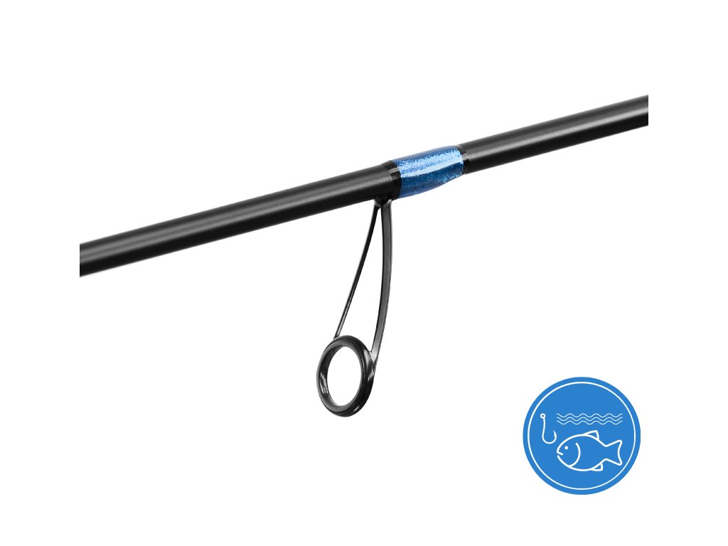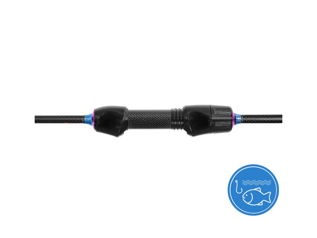 Extra štíhlý blank, rychlá špička a exkluzivní design – i to jsou slova, která charakterizují přívlačový prut GraphiX 24T. Jak název napovídá, prut je postaven na 24T karbonu, který je velmi lehký a zaručuje potřebnou pevnost a zároveň citlivost prutu, takže vám neujde ani ten nejjemnější záběr od vašeho oblíbeného predátora. Prut je vhodný pro lov s tvrdými nástrahami jako woblery, rotačky a plandavky, avšak může být využit také při lovu na měkké nástrahy, což z něj činí univerzálního pomocníka při různých druzích ultra lehké a lehké přívlače. GraphiX nabízíme ve třech délkách s různou gramáží, které vám umožňují vybrat si prut podle své chuti a potřeb. Nejlehčí verze je také nejjemnější a je vhodná pro lov pstruhů, případně okounů. Při střední délce je prut pevnější, avšak stále má jemnou a citlivou špičku, která jej předurčuje k lovu středně velkých dravců. Varianta s nejvyšší vrhací zátěží disponuje z této trojice největší silovou rezervou a tedy najde vyžití např. při lovu candáta. Sedlo prutu je velmi lehké a díky ergonomickému tvaru se skvěle drží v ruce. Po celé délce jsme použili jednostopková očka s modrým metalickým vinutím, která jsou rozmístěna tak, aby zaručovala rovnoměrné rozmístění síly a optimální vyvážení prutu. Povrchová úprava je matná, doplněná lesklým povrchem na rukojeti s efektním 3K karbonovým motivem. Technické parametry Model: 1,85m/0,5-5g Počet dílů: 2 Průměr blanku nad rukojetí: 6,9mm Počet oček: 8 Transportní délka: 94cm Hmotnost: 82g Rukojeť: dělená, EVA pěna Délka rukojeti (od spodní části po střed sedla): 25,5cm Model: 2,13m/2-7g Počet dílů: 2 Průměr blanku nad rukojetí: 8,6mm Počet oček: 8 Transportní délka: 110cm Hmotnost: 84g Rukojeť: dělená, EVA pěna Délka rukojeti (od spodní části po střed sedla): 27,5cm Model: 2,28m/3-18g Počet dílů: 2 Průměr blanku nad rukojetí: 9,1mm Počet oček: 9 Transportní délka: 117cm Hmotnost: 102g Rukojeť: dělená, EVA pěna Délka rukojeti (od spodní části po střed sedla): 29,5cmDoplňkové parametry