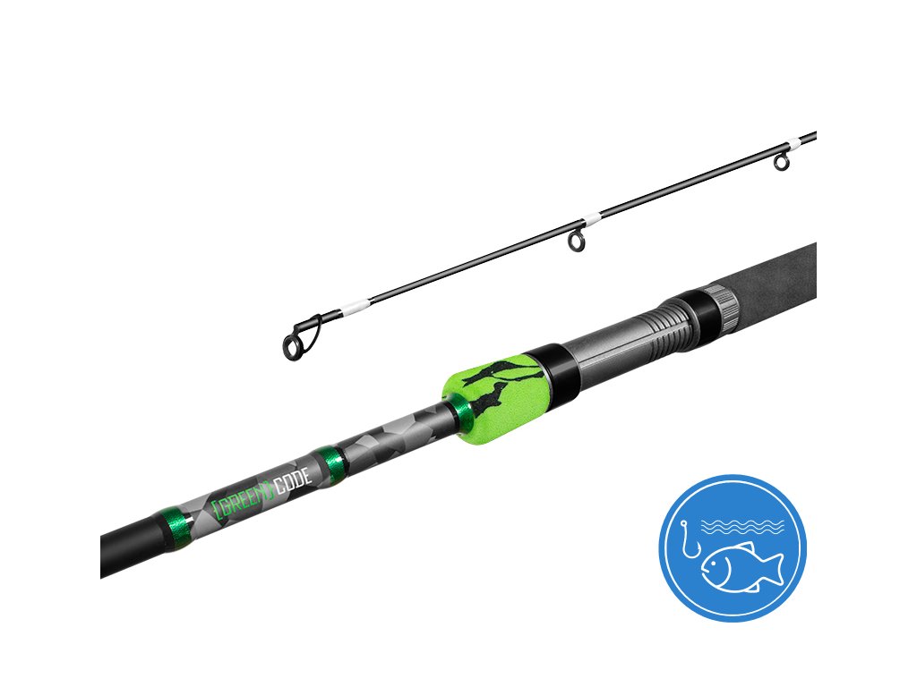 Excelentní poměr ceny s kvalitou je to, co ve velké míře vystihuje právě GreenCODE. Spolehlivý, univerzální přívlačový prut si najde své místo při lovu s gumovými nástrahami, ale nebude zaostávat ani při lovu na woblery či plandavky. Pro lov ze člunu bychom doporučili dvě verze 210cm, 240cm a pro lov ze břehu jsou vhodnější volbou pruty v délkách 255cm a 270cm. Plná rukojeť, vyrobená v kombinaci černé EVA pěny se zeleno-černou kamufláží dokonale ladí a zároveň poskytuje maximální komfort při rybolovu. Nad rukojetí najdeme kontrastní zelené vinutí a označení série v kamuflážovém poli GreenCODE. Nabízená škála různých délkových variant a vrhacích zátěží jen podtrhuje jeho univerzálnost a umožňuje výběr toho správného modelu pro různé situace. Technické parametry: Model: 210cm/25g Počet dílů: 2 Transportní délka: 110cm Počet oček: 7 Průměr blanku nad rukojetí: 10mm Hmotnost: 120g Rukojeť: EVA pěna Délka rukojeti (od spodní části prutu po střed sedla): 27cm Model: 240cm/35g Počet dílů: 2 Transportní délka: 125,5cm Počet oček: 8 Průměr blanku nad rukojetí: 11mm Hmotnost: 160g Rukojeť: EVA pěna Délka rukojeti (od spodní části prutu po střed sedla): 34cm Model: 255cm/40g Počet dílů: 2 Transportní délka: 133cm Počet oček: 9 Průměr blanku nad rukojetí: 11mm Hmotnost: 186g Rukojeť: EVA pěna Délka rukojeti (od spodní části prutu po střed sedla): 35cm Model: 270cm/45g Počet dílů: 2 Transportní délka: 140cm Počet oček: 9 Průměr blanku nad rukojetí: 12mm Hmotnost: 214g Rukojeť: EVA pěna Délka rukojeti (od spodní části prutu po střed sedla): 38cmDoplňkové parametry