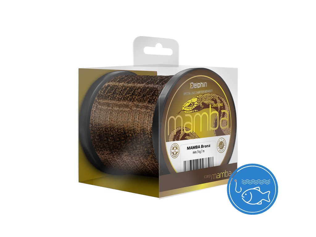 Excelentní kaprařský vlasec s unikátním 3D vzorem. MAMBA disponuje vynikajícími vlastnostmi jako pevnost a nosnost v uzlu. Díky svému jedinečnému kamuflážovému provedení rychle splyne s okolním prostředím. Jeho pevnost a odolnost vůči oděru ho předurčují k použití i do náročných podmínek a jeho mimořádně hladký a jemný povrch umožňuje využití při dalekém nahazování. Díky těmto vlastnostem je Delphin MAMBA považován za univerzální kaprařský vlasec, který splňuje ty nejnáročnější požadavky, a na který se můžete spolehnout v každé situaci. MM/KG: 0.26mm/5,2kg, 0.28mm/6,1kg, 0.30mm/7,0kg, 0.32mm/7,4kg, 0.34mm/8,1kgDoplňkové parametry