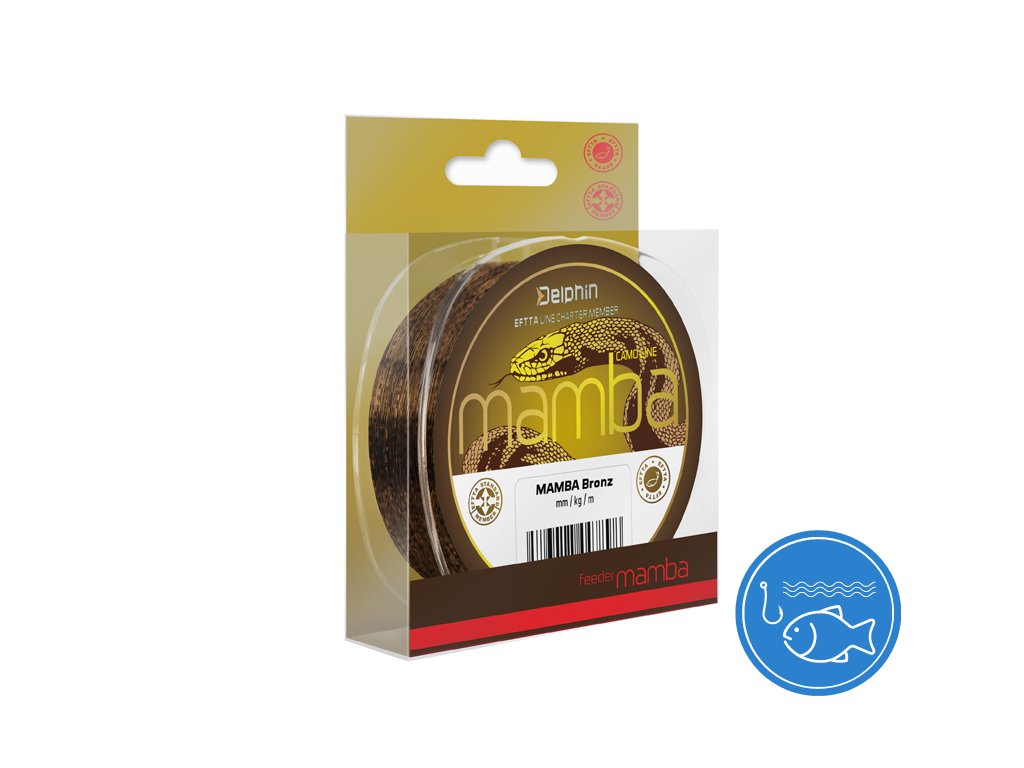 Excelentní feederový vlasec s unikátním 3D vzorem. MAMBA disponuje vynikajícími vlastnostmi jako pevnost v uzlu, či vysoká nosnost. Díky svému jedinečnému kamuflážovému provedení rychle splyne s okolním prostředím. Jeho mimořádně hladký a jemný povrch umožňuje využití při dalekém nahazování. Díky těmto vlastnostem je Delphin MAMBA považován za výborný univerzální vlasec, na který se můžete spolehnout v každé situaci. MM/KG: 0.16mm/2,5kg, 0.18mm/2,9kg, 0.20mm/3,5kg, 0.23mm/4,3kg, 0.26mm/5,2kg, 0.28mm/6,1kgDoplňkové parametry