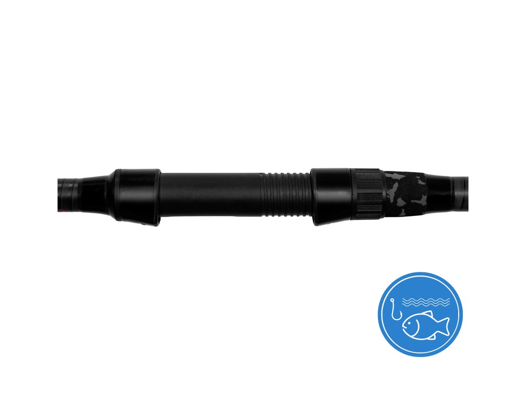 Delphin METEOR je nekompromisní spodový prut s enormní silou, který dopraví vaše krmné rakety přesně tam, kam potřebujete! Silnostěnný blank z 24T karbonu zaručuje velkou silovou rezervu potřebnou pro nahazování těžkých raket i na velkou vzdálenost. Navzdory těmto vlastnostem se prut vyznačuje poměrně nízkou hmotností, což jej předurčuje i pro větší krmné kampaně, při kterých je do vody potřeba dostat velké množství návnady. Blank je navíc po celé délce dodatečně zpevněn PowerWrap technologií, která mu dodává extra sílu navíc. Jedná se o dodatečné vinutí karbonu kolem prutu, kterým je dosaženo značného zvýšení pevnosti a odolnosti vůči přetížení, což v praxi znamená vyšší životnost a snížení náchylnosti k mechanickému poškození. Na spojích jednotlivých dílů nacházejí kovové PowerJoin kroužky, jejichž úkolem je minimalizovat možnost tříštivého poškození blanku, během častého nahazování s krmnými raketami. Delphin METEOR je osazen pevnými dvoustopkovými SIC očky, přičemž naváděcí očko o velikosti #50 zajišťuje ideální vedení vlasce či šňůry. Osvědčené DPS sedlo umožňuje upevnění jakkoliv velkých spodových či jiných surfových navijáků. Celkový design prutu dotváří elegantní oranžové doplňky, ale také zajímavá rukojeť s EVA kamuflážovou koncovkou, která se během častého nahazování drží v ruce velmi komfortně. Technické parametry: Model: 360cm/5lbs Počet dílů: 2 Průměr blanku nad rukojetí: 16,2mm Počet oček: 6 Transportní délka: 186 cm Hmotnost: 450 g Rukojeť: PowerWrap, Shrink, koncovka z EVA pěny Délka rukojeti (od spodní části prutu po střed sedla): 68 cm Velikost naváděcího očka: 50 mm Model: 390cm/5lbs Počet dílů: 3 Průměr blanku nad rukojetí: 15,6 mm Počet oček: 6 Transportní délka: 136 cm Hmotnost: 560 g Rukojeť: PowerWrap, Shrink, koncovka z EVA pěny Délka rukojeti (od spodní části prutu po střed sedla): 70 cm Velikost naváděcího očka: 50 mmDoplňkové parametry