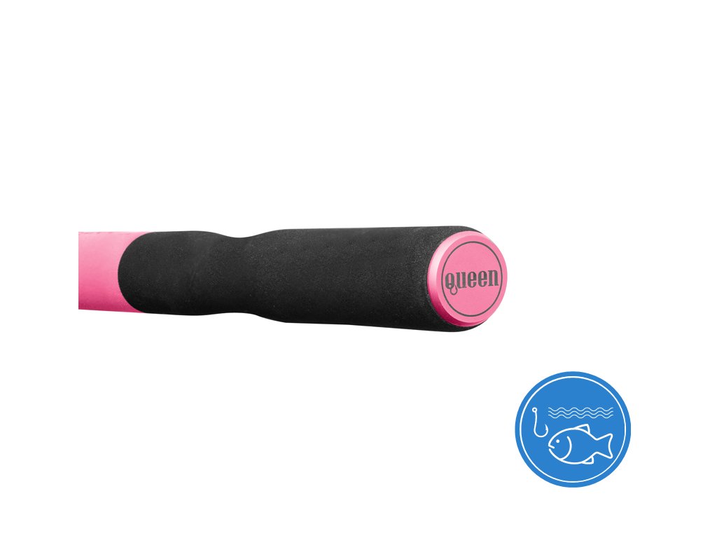 Tak jako všechny produkty z řady Queen, i tento prut je určen speciálně pro něžné pohlaví. Konkrétně pro ty dámy, které mají v oblibě zejména lov na feeder. Navržen je v přitažlivé růžové barvě v kombinaci se zlatými a černými prvky. Základem je ověřený štíhlý blank s parabolickou akcí a výbornými mechanickými vlastnostmi. Celá rukojeť je potažena EVA pěnou, která je velmi příjemná na dotek i ve studeném zimním počasí. Navíc je navržena v barevné dvojkombinaci růžové s černou, což vytváří vizuálně velmi pěkný prvek. Rukojeť je v jednom místě ergonomicky zúžená a ukončena je vkusným hliníkovým prvkem růžové barvy s logem. Díky citlivým špičkám, které jsou s prutem dodávány, vám neunikne ani ten nejjemnější záběr od malých ryb. Blank je osazen kvalitními a lehkými SIC očky, které nevytvářejí žádné nadbytečné tření a odpor při průchodu vlasce. V základu je prut dodáván se 1. karbonovou (Heavy) a 2. CarbonGlass (Light, Medium) špičkami. Feederové pruty QUEEN nebudou jen ozdobou každé rybářky, ale také plnohodnotným pomocníkem při lovu. Technické parametry: Model: 330cm/100g Počet dílů: 3 Průměr blanku nad rukojetí: 12,5mm Počet oček (prut + špička): 6+5 Transportní délka: 115cm Hmotnost: 210g Rukojeť: EVA pěna Délka rukojeti (od spodní části prutu po střed sedla): 42cm Špičky: CarbonGlass - Light, Medium Carbon - Heavy Model: 360cm/100g Počet dílů: 3 Průměr blanku nad rukojetí: 13mm Počet oček (prut + špička): 7+5 Transportní délka: 125cm Hmotnost: 230g Rukojeť: EVA pěna Délka rukojeti (od spodní části prutu po střed sedla): 45cm Špičky: CarbonGlass - Light, Medium Carbon - Heavy Model: 390cm/100g Počet dílů: 3 Průměr blanku nad rukojetí: 14mm Počet oček (prut + špička): 8+5 Transportní délka: 135cm Hmotnost: 260g Rukojeť: EVA pěna Délka rukojeti (od spodní části prutu po střed sedla): 47cm Špičky: CarbonGlass - Light, Medium Carbon - HeavyDoplňkové parametry