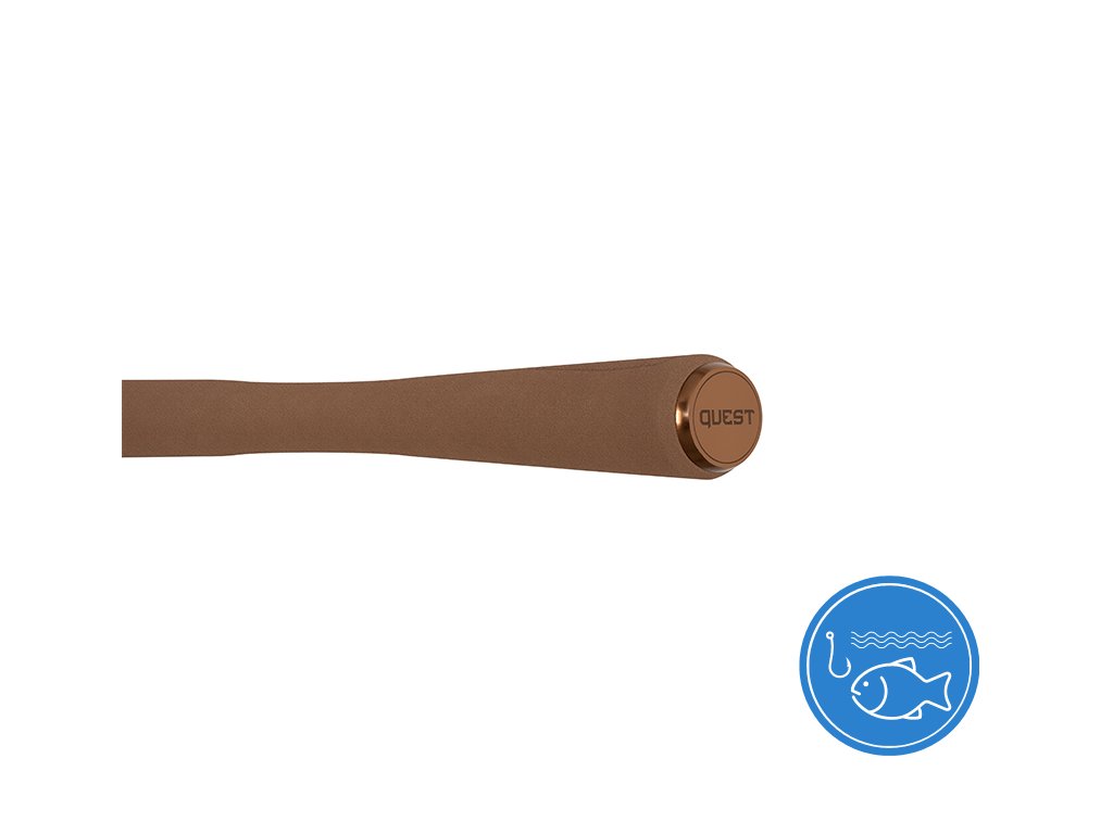 Nabídku baitcastových prutů jsme rozšířili o model QUEST B´CAST, který je primárně určen pro těžkou přívlač s nástrahami typu swimbait, jerkbait nebo s velkými gumovými nástrahami. Prut je postaven na pevném a rychlém blanku, který má množství silové rezervy pro nahazování a zásek do tvrdých čelistí velkých predátorů. Blank prutu je osazen vysoce kvalitními a odolnými dvoustopými SeaGuide očky, která jsou umístěna tak, aby co nejlépe rozložily sílu po celé délce a zároveň umožnily snadné a přesné nahazování či hladký chod šňůry. Ergonomicky tvarované černé SeaGuide sedlo perfektně sedne do ruky a zvládnete s ním i dlouhé dny strávené u vody. Nad sedlem se nachází kovové odolné očko vhodné pro zavěšení nástrahy během přesunů nebo po ukončení lovu. Rukojeť prutu je vyrobena z hnědé EVA pěny, která je tvarována tak, aby manipulace s prutem byla maximálně komfortní. Rukojeť je zakončena měděnou kovovou koncovkou, což spolu s ostatními detaily a matným tmavě hnědým blankem vytváří efektní a originální celek. Technické parametry: Model: 195cmm/125g Počet dílů: 2 Průměr blanku nad rukojetí: 10,6mm Počet oček: 8 Transportní délka: 112,5cm Hmotnost: 162g Rukojeť: EVA pěna Délka rukojeti (od spodní části prutu po střed sedla): 38cm Model: 230cm/125g Počet dílů: 2 Průměr blanku nad rukojetí: 11,7mm Počet oček: 9 Transportní délka: 120cm Hmotnost: 178g Rukojeť: EVA pěna Délka rukojeti (od spodní části prutu po střed sedla): 43cmDoplňkové parametry