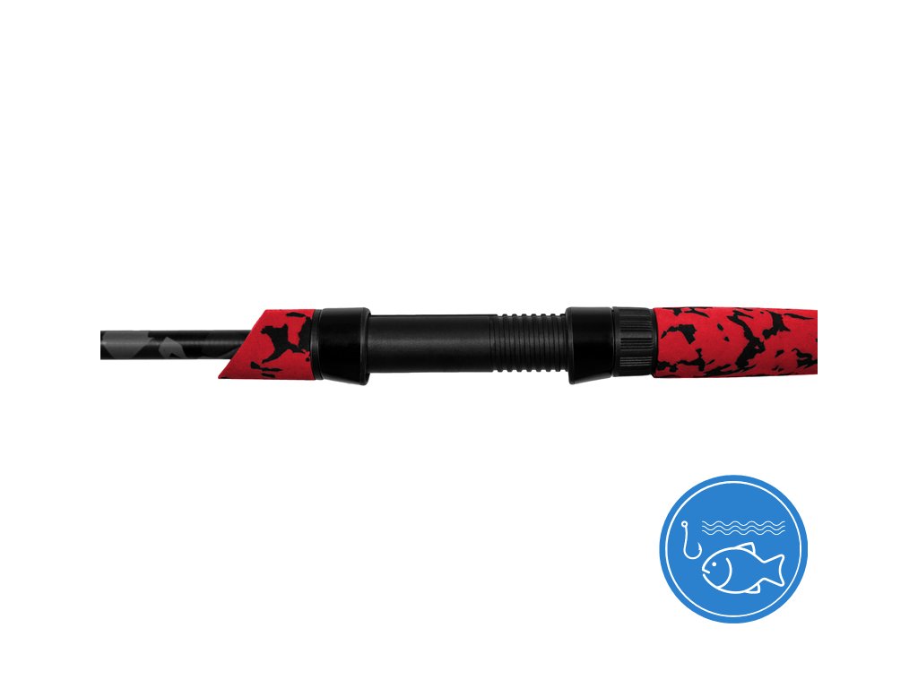 Rychlý, lehký, designově odlišný od všech ostatních prutů. Přesně to definuje přívlačový prut Delphin RedCODE. Série RedCODE přináší na trh novou dimenzi přívlačových prutů. Pruty výborně sedí v ruce díky netypickému, sezanému tvarování rukojeti z EVA pěny, které vám umožní přímý kontakt s blankem prutu. Dělená rukojeť provedená v červeno-černé maskáčové kombinaci výrazně napomáhá k velmi dobrému vyvážení prutů RedCODE i během celodenního rybaření. Kvalitní 24T karbon, který byl použit na celé délce blanku výborně doplňuje semiparabolickou akci prutu a záběr se tak okamžitě přenáší do rukojeti, což dovoluje okamžitou reakci a rychlý zásek. Vyvázání posledních tří oček bílou barvou vám usnadní rozeznat i ten nejopatrnější záběr od nenasytných dravců. Přesně určená velikost oček s výplní SiC a jejich rozložení umožňují dokonale přesné nahazování nástrahy do lovného místa. Technické parametry: Model: 183cm/0.5-5g Počet dílů: 2 Průměr blanku nad rukojetí: 7,0mm Počet oček: 8 Transportní délka: 94,5cm Hmotnost: 82g Rukojeť: dělená, EVA pěna Délka rukojeti (od spodní části prutu po střed sedla): 25,5cm Model: 213cm/2-7g Počet dílů: 2 Průměr blanku nad rukojetí: 8,7mm Počet oček: 9 Transportní délka: 109,5cm Hmotnost: 84g Rukojeť: dělená, EVA pěna Délka rukojeti (od spodní části prutu po střed sedla): 28,5cm Model: 228cm/3-18g Počet dílů: 2 Průměr blanku nad rukojetí: 9,2mm Počet oček: 9 Transportní délka: 117,5cm Hmotnost: 102g Rukojeť: dělená, EVA pěna Délka rukojeti (od spodní části prutu po střed sedla): 29,5cm Model: 244cm/7-26g Počet dílů: 2 Průměr blanku nad rukojetí: 11,5mm Počet oček: 9 Transportní délka: 126cm Hmotnost: 128g Rukojeť: dělená, EVA pěna Délka rukojeti (od spodní části prutu po střed sedla): 32cmDoplňkové parametry