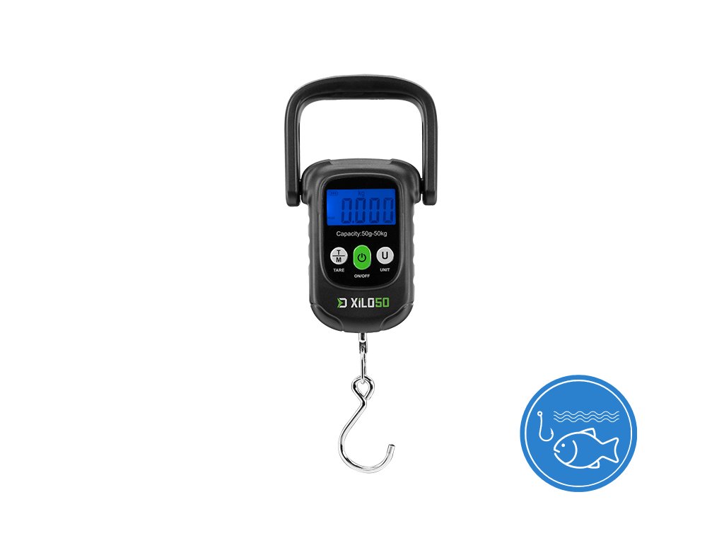 Digitální váha, umožňující měření hmotnosti v rozmezí od 50g až do 50kg s vysokou přesností. XILO má jednoduché ovládání pomocí tří tlačítek. Zapnutí, resp. vypnutí váhy probíhá zatlačením zeleného tlačítka ON/OFF. Krátkými stisky tlačítka U (UNIT) lze měnit jednotky hmotnosti (kg, lbs, JIN, oz), zobrazované na displeji. Funkce TARE umožňuje zavěsit na hák například vážící vak, následně zmáčknout TARE a naměřené hodnoty se vynulují. To znamená, že když následně vložíte do vaku úlovek, zobrazí se jeho čistá váha. Kromě těchto funkcí váha disponuje podsvíceným displejem a indikací slabé baterie či přetížení. XILO je navíc vybavena 100 cm samonavíjecím pásmem, čímž v jednom produktu dostanete kromě váhy také metr. Výhodou je také velmi pevná, masivní rukojeť pro uchopení, kterou je navíc možné zasunout tak, aby měla váha co nejkompaktnější rozměry. Technické parametry: Výška (tělo váhy): 10,3cm Výška (s rukojetí a hákem): 23cm Šířka: 9cm Kapacita váhy: 50kg Hmotnost: 160g Napájení: 2x AAA baterie Baterie jsou součástí balení zdarma!Doplňkové parametry