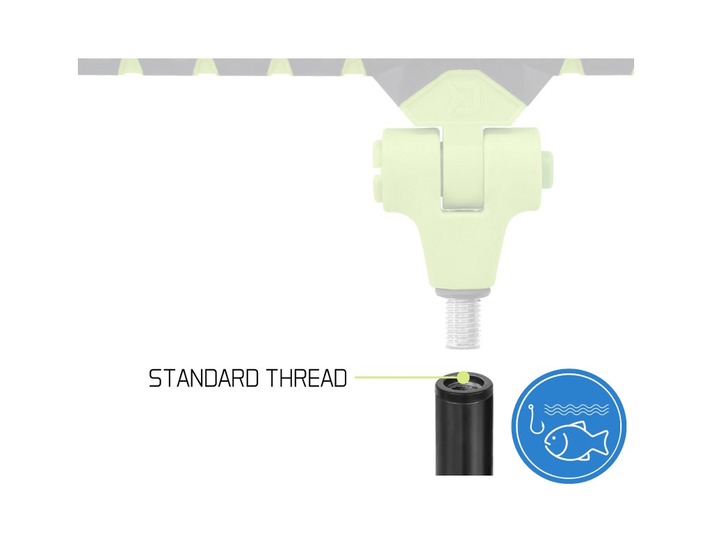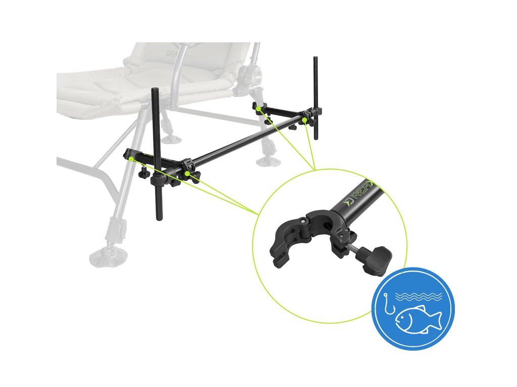 Nechcete kupovat na každou rybolovnou techniku samostatnou výbavu? Delphin Reaxe UniFIX přemění vaše běžné kaprařské křeslo v ideální feedrovou sestavu! Důmyslně propracovaný a maximálně univerzální držák feederových prutů, který lze připevnit na většinu rybářských křesel dostupných na trhu. UniFIX DUO disponuje posuvným uchytávacím mechanismem na křeslo s identickými plastovými klipy po obou stranách. Klipy jsou jištěny pomocí šroubů a lze je pomocí plastové redukce přizpůsobit pro různé průměry nohou a zároveň jsou otočné, takže není problém je upevnit na šikmé, svislé nebo vodorovné části konstrukce křesla. Variabilitu držáku podtrhuje i možnost posouvat a otáčet úchyty po jeho kovové konstrukci, což výrazně usnadňuje upevnění ke křeslům. Na obou koncích produktu se nacházejí tyčky umístěné v plastových klipech, které lze posouvat ve vertikální rovině, případně otáčet. Na horním konci tyček se nachází univerzální závit určený pro různé druhy feederových držáků na pruty. Držák je na obou koncích teleskopický, takže jej lze vysunout podle vašich potřeb do každé strany. UniFIX DUO je vyroben převážně z hliníku, takže je extra lehký a barevně je laděn do černa s výraznými zelenými prvky, typickými pro celou sérii REAXE. Technické parametry: Celková délka: 90-155cm Výška tyček se závitem: 0-28cm Průměr úchytu: 20-26mm Hmotnost: 762gDoplňkové parametry