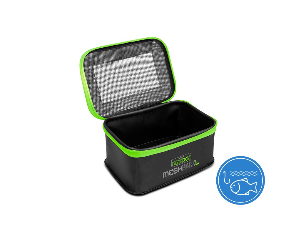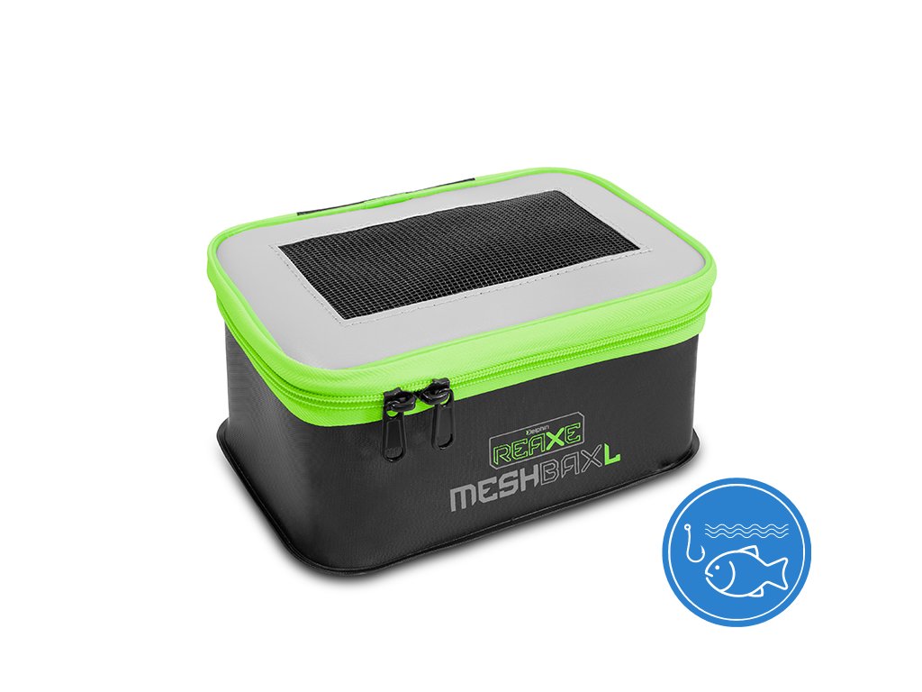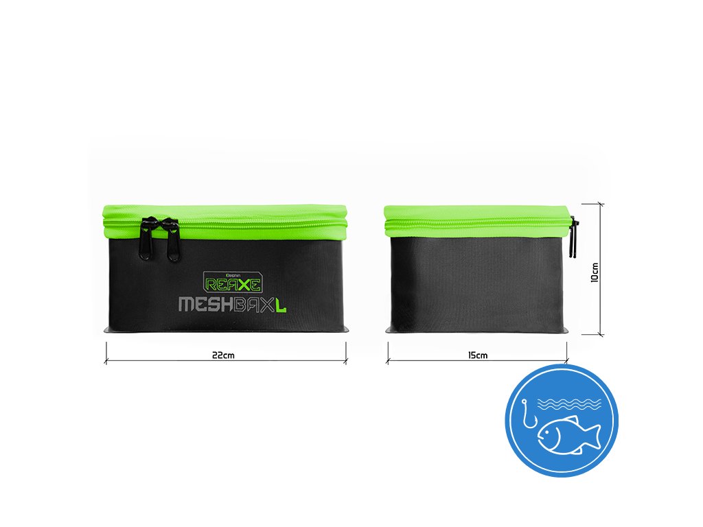 Praktická taška určená primárně pro kostní červy a jiné druhy živých návnad. Víko je tvořeno perforovanou černou síťkou, která zajistí červům dostatek vzduchu, zabrání přehřívání a tím udrží vaši návnadu déle živou a čerstvou. Taštička je černé barvy s šedým víkem, výrazným - dobře viditelným zipem, který ji dokonale uzavře a tím zamezí nechtěnému úniku červů. MeshBAX lze využít také jako univerzální tašku pro různé drobnější rybářské příslušenství či nástrahy, dipy a jiné komponenty. Produkt je vyroben z materiálu EVA, který je snadno omyvatelný a odolný vůči vodě i mechanickému poškození. Technické parametry: Rozměry: 22x15x10cmDoplňkové parametry
