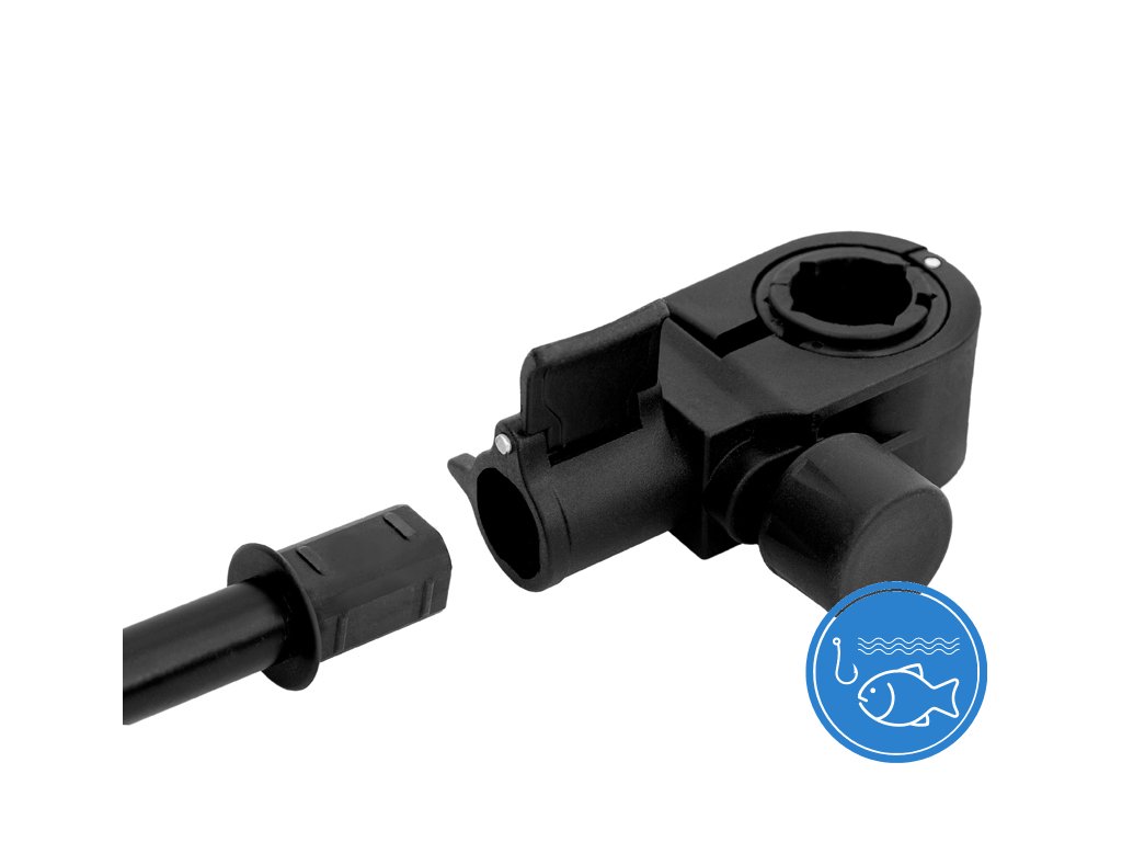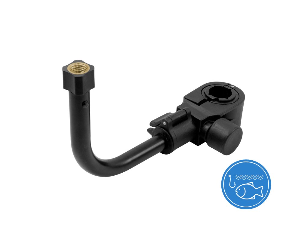 Univerzální feederový držák ve tvaru písmene L, vhodný pro použití například v kombinaci s držákem prutů, případně jako držák feederové síťky. Také jej lze použít jako samostatný zadní držák prutu. Disponuje úchytem s variabilním průměrem 25, 30 a 36 mm díky čemuž pasuje téměř na všechny standardně vyráběná křesla na trhu. Výhoda úchytu spočívá také v tom, že je opatřen klipem, díky kterému není nutné pokaždé sundávat z křesla celý systém. Jednoduše stačí odjistit klip a vytáhnout držák, zatímco úchyt zůstává připraven na křesle pro další lov. Devizou tohoto úchytu je také to, že je stejný u několika držáků ze série ATOMA. Díky tomu je možné držáky mezi sebou podle potřeby měnit bez nutnosti odmontování celého úchytu. Držák disponuje standardním závitem, ale také spojovacím konektorem, na kterém je závit s větším průměrem. Díky tomu k tomuto držáku "sedne" každý standardně vyráběný držák prutů, případně síťka. Technické parametry: Celková délka: 230mm Průměr: 16mm Průměr úchytu: 25,30,36mmDoplňkové parametry