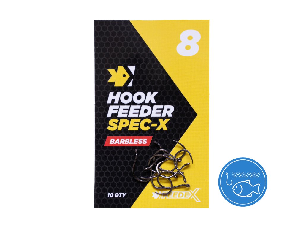 Spec-X jsou speciální feeder háčky s extra širokým ramínkem, který je mimořádně ostrý a zároveň velmi odolný. I proto jej používají mnozí závodníci a odborníci v této disciplíně. Lze jej použít k nastražení různých nástrah, jako je feeder boilie, pop-up, wafters, menších pelet, partiklu a podobně. Použijte bezuzlové vázání a vlasový přívěs zakončený smyčkou, nekonečnou zarážkou, bayonetem nebo zapichovákem. Lze jej použít i bez vlasového přívěsu pro nastražení měkčích nástrah přímo na háček.Doplňkové parametry