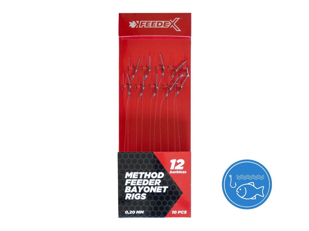 Method feeder návazce se zapichovacím bayonetem jsou určené pro malé pop-up, wafters, feeder boilie či plovoucí i potápivou kukuřici. Jsou osazené profesionálním háčkem Spec-X, kteří používají mnozí závodníci, a fluorocarbonem o délce 10 cm.Doplňkové parametry