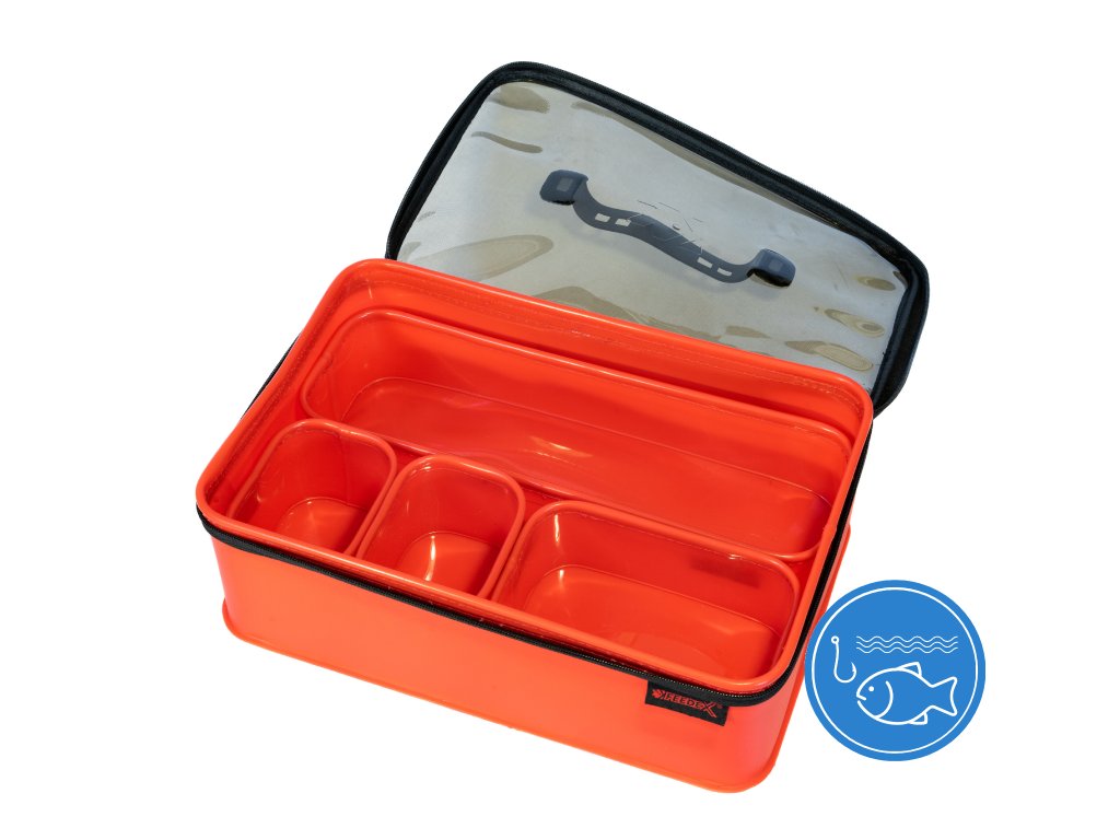 Feeder Expert EVA Method Feeder Set 4+1 o celkovém rozměru 37 x 25 x 12 cm je velmi praktické pouzdro, které je určeno na krmítka, různé pomůcky, a především návnady a nástrahy na feeder a method feeder. Lze je v něm převážet, míchat nebo vlhčit. Při chytání je pak budete z jednotlivých částí snadno nabírat. Jedna dlouhá, jedna střední a dvě menší vnitřní části vám umožní připravit si různé typy nástrah a návnad. Velkou výhodou je, že EVA materiál je velmi odolný, omyvatelný a voděodolný. Díky tomu jednotlivé části po použití snadno vyčistíte. Průsvitná vrchní část vám umožní poznat, co se v pouzdru nachází. Vrchní madlo usnadňuje přenášení.Doplňkové parametry