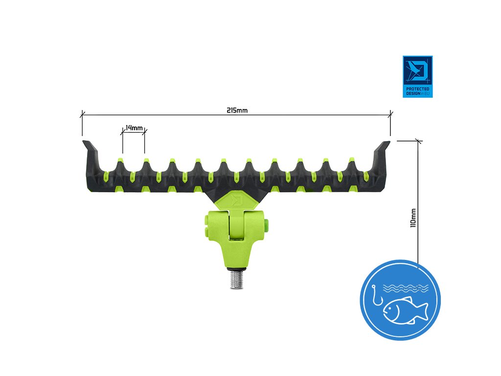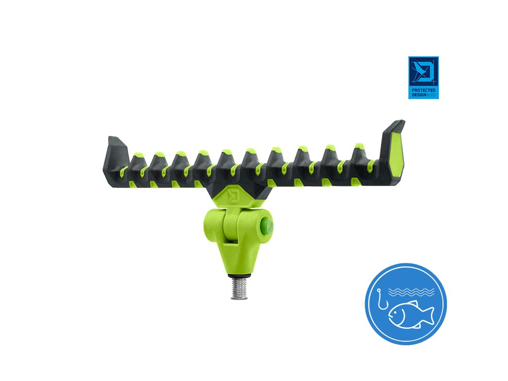 Prémiový feederový držák vysoké kvality v barvách inovativní feederové série Delphin Reaxe. Jak už název napovídá, model Flexi je plně naklápětelný pomocí jednoduchého mačkacího mechanismu, kterým umožňuje přizpůsobit se různému sklonu prutu, například během lovu na řece, ve větru nebo z nerovného terénu. Díky dostatečné šířce umožňuje upravit polohu prutu po nahození a tak docílit optimálního ohybu špičky bez potřeby nadměrného navíjení vlasce zpět na cívku navijáku. Držák je vyroben z odolných materiálů, takže se snadno nepoškodí a nepoškrábe. Jeho speciálně navržený tvar poskytuje dokonalou podporu prutu a zabrání jeho vysmeknutí i při razantních záběrech. Povrch držáku je potažen pogumovaným materiálem, který je extra šetrný k povrchu prutu a chrání jej před poškozením. Univerzální závit umožňuje uchycení na všechna standardní ramena, stojany a vidličky. Na závitové části se nachází gumová podložka, která zamezuje otáčení držáku. Držák Flexi lze použít i pro lov se dvěma pruty. Technické parametry: Celková délka: 215mmDoplňkové parametry