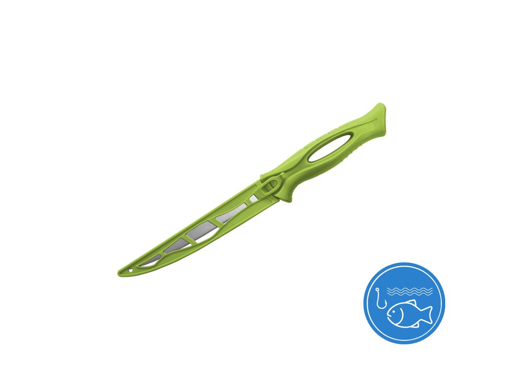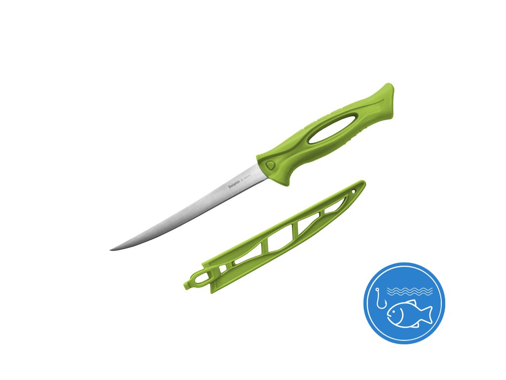 Jednoduchý "fileťák" B-MAXI má extra ohebnou čepel, díky které rychle vyfiletujete rybu či zpracujete maso. Čepel a pouzdro je výrazné zelené barvy, a tak se ve vaší rybářské výbavě neztratí. Hodí se i jako skvělý společník do dílny a zahrady. Je velmi lehký, dodává se s bezpečným plastovým pouzdrem. Technické parametry: Delphin B-MAXI Celková délka: 285mm Délka čepele: 153mm Výška čepele: 20mm Tloušťka čepele: 1,2mm Materiál čepele: nerezová ocel Hmotnost: 58gDoplňkové parametry