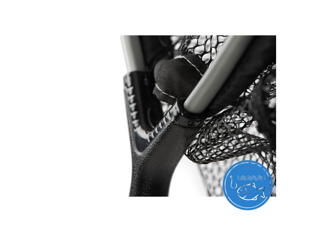 - Pogumovaná síťka je šetrná k rybám a mnohem méně se do ní zachytávají háčky