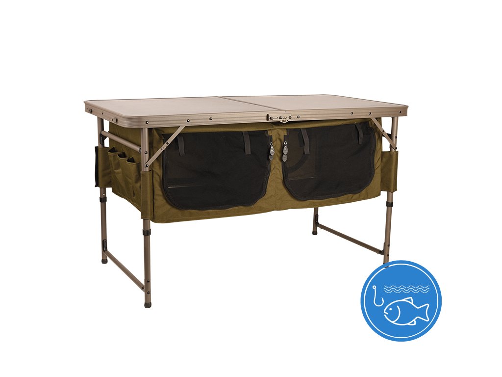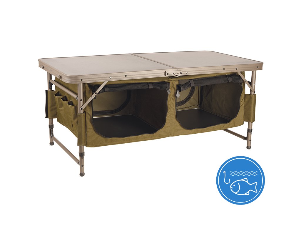 Řešení 2v1 kombinující velký stůl s úložným prostorem pro delší pobyt u vody