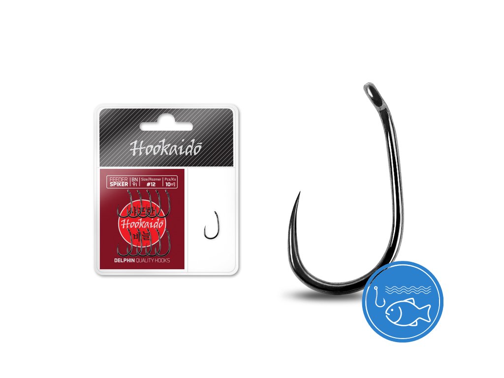 Háčky červené série Delphin HOOKAIDO jsou určeny pro každodenní rybolov. Jsou velmi odolné, ostrost a tvar neztrácejí ani po delším používání a mnoha zdolaných rybách. Vyrobeny jsou jen z materiálů vysoké jakosti. Díky pestrosti tvarů a velikostí si z této série vybere každý rybář ten svůj! Asymetrické balení 10+1 umožňuje rybářům snadnější výběr potřebného háčku. Delphin HKD Feeder SPIKER je tvarově oblíbeným háčkem, který je vhodný zejména pro lov menších ryb, ať už feedrovou, nebo jinou jemnou technikou. Háček disponuje očkem, což umožňuje prezentaci nástrahy mimo háček, ale také přímo na něm. SPIKER není opatřen protihrotem, díky čemuž je k rybám velmi šetrný. Technické parametry: - s očkem - bez protihrotu - průřez: kulatýDoplňkové parametry