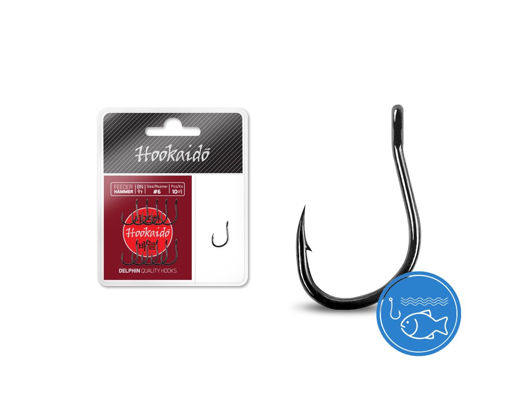 Háčky červené série Delphin HOOKAIDO jsou určeny pro každodenní rybolov. Jsou velmi odolné, ostrost a tvar neztrácejí ani po delším používání a mnoha zdolaných rybách. Vyrobeny jsou jen z materiálů vysoké jakosti. Díky pestrosti tvarů a velikostí si z této série vybere každý rybář ten svůj! Asymetrické balení 10+1 umožňuje rybářům snadnější výběr potřebného háčku. Delphin HKD HAMMER je univerzálním a velmi pevným háčkem, který je vhodný pro lov jemnou technikou, ale i pro lov větších bojovných ryb. Mají široké spektrum použití. Větší velikosti jsou mimo jiné vhodné i pro lov kaprů technikou method feeder s peletami či dalšími nástrahami umístěnými mimo háček. Technické parametry: - s očkem - s protihrotem - průřez: kulatýDoplňkové parametry
