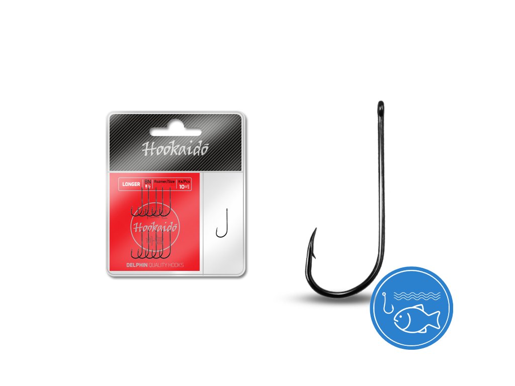 Háčky červené série Delphin HOOKAIDO jsou určeny pro každodenní rybolov. Jsou velmi odolné, ostrost a tvar neztrácejí ani po delším používání a mnoha zdolaných rybách. Vyrobené jsou jen z materiálů vysoké jakosti. Díky pestrosti tvarů a velikostí si z této série vybere každý rybář ten svůj! Asymetrické balení 10 + 1 umožňuje rybářům jednodušší výběr potřebného háčku. Delphin HKD LONGER je háčkem skvělým na lov s drobnými živočišnými nástrahami. Díky menšímu průměru základního drátu nástrahu nepoškozuje a ta zůstává déle pohyblivá a lákavá. Technické parametry: - s očkem - s protihrotem - osově rovný - průřez: kulatýDoplňkové parametry