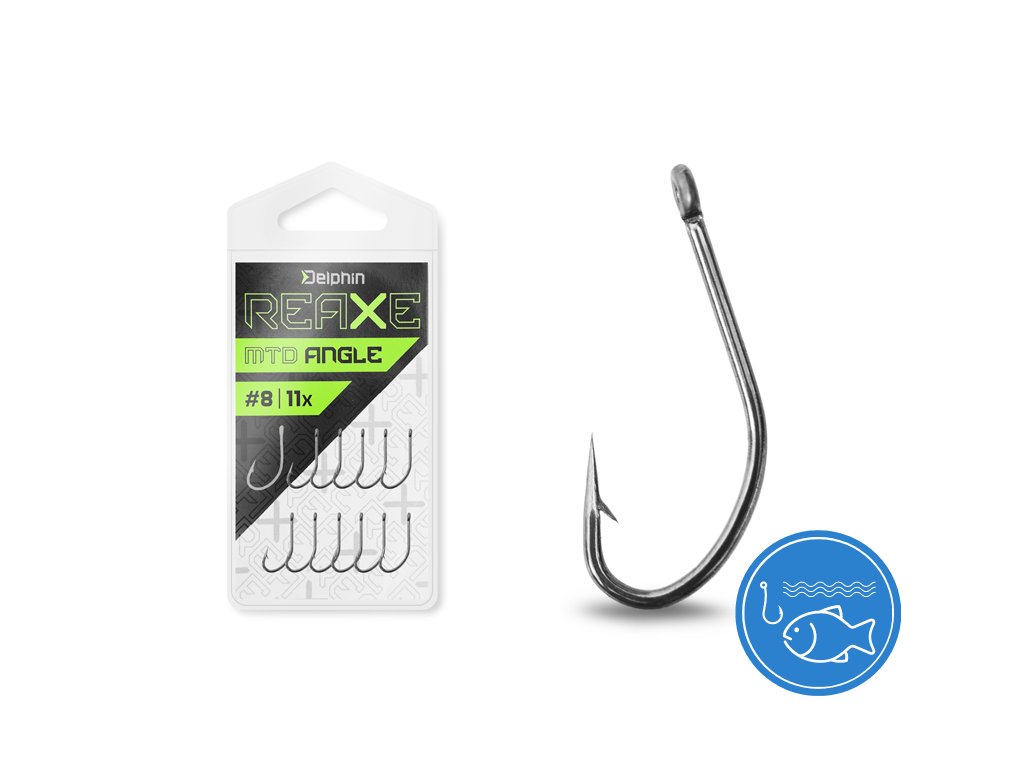 Série háčků REAXE byla vytvořena zejména pro příznivce lovu feederovou technikou. Při výrobě byly použity moderní technologie, které zajišťují vysokou pevnost, dostatečnou ostrost a tím také úspěšný lov během vašich vycházek. Vybrali jsme léty ověřené tvary, které po celém světě zdolaly už tisíce ryb. REAXE MTD ANGLE je háček určený hlavně pro method feeder, který lze použít při lovu s měkkými i tvrdými nástrahami. Má dlouhé ramínko s rovným očkem a zajímavě zahnutý oblouček s vyhnutím, čímž MTD ANGLE velmi dobře drží v tlamě a zaručuje vysoký poměr záběrů a zdolaných ryb.Doplňkové parametry