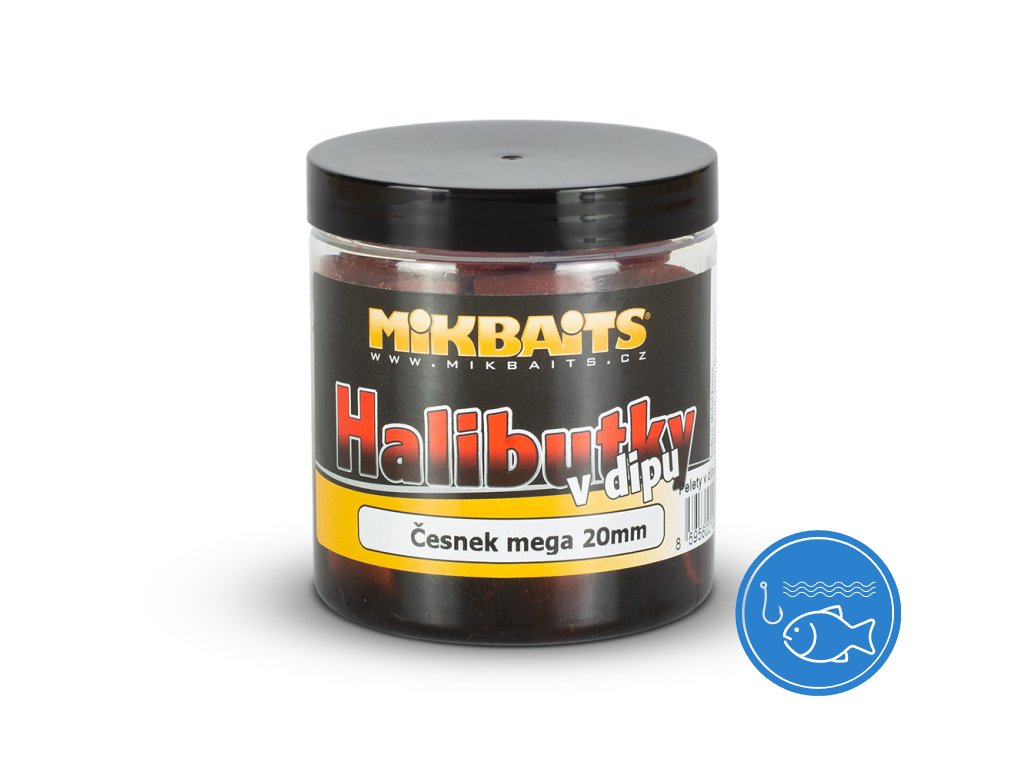 Mikbaits Halibutky v dipu 250ml - Česnek Halibut 20mm