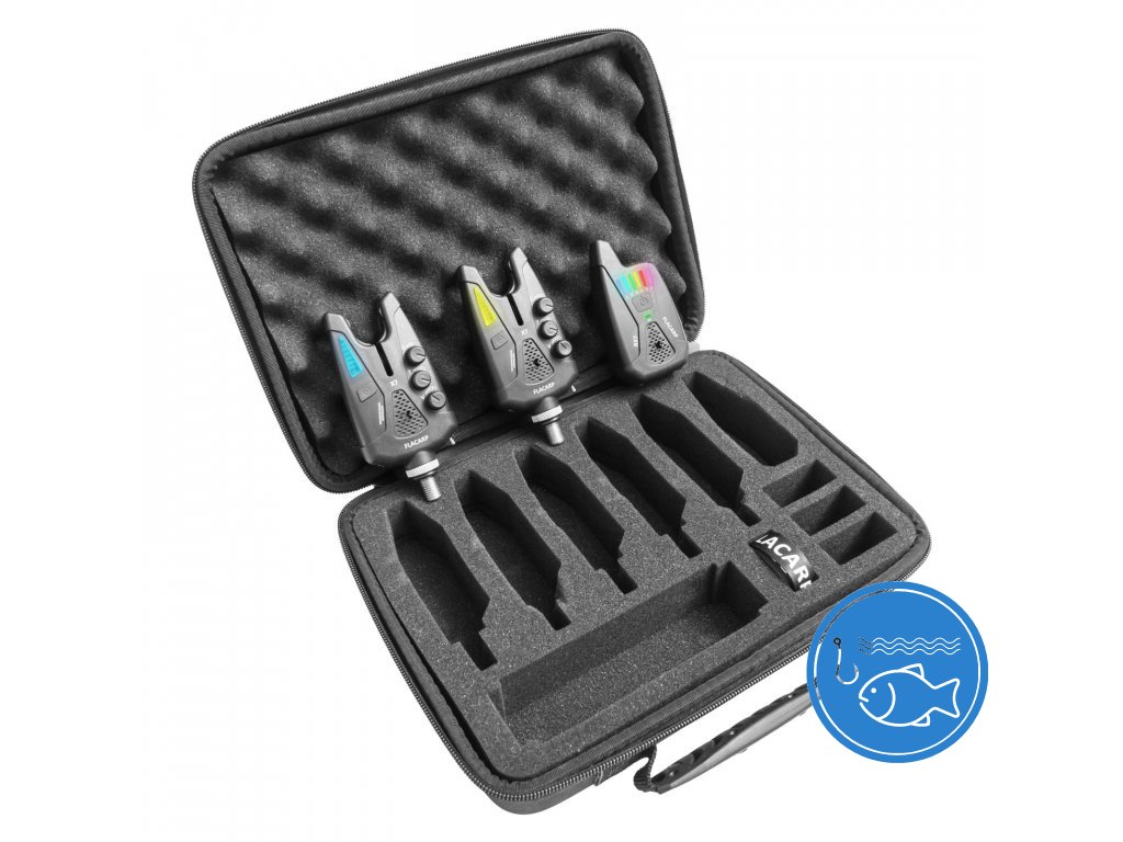 Sada signalizátorů FLACARP X7 + přijímač FLACARP RX7, ochranné pouzdro, šňůrka na krk, sada kvalitních baterií GP Ultra alkaline. Vyberte si velikost sady v horním menu. Nabízíme variantu 2+1, 3+1 a 4+1. Nové špičkové signalizátory záběru FLACARP X7 jsou vybaveny revolučním ultracitlivým snímačem, reagujícím již od cca 1,5mm potahu vlasce v obou směrech (i padák) s možností regulace délky potahu v širokém rozsahu. Přidali jsme nový rozsah tónů od oblíbeného hlubokého „kvákání” až po vysoké tóny s plynulou regulací hlasitosti. A nechybí ani oblíbená optická signalizace s možností nastavení barvy a jasu RGB LED. A k tomu všemu extrémní mechanická odolnost a bezstarostné napájení běžnými tužkovými články AAA. Základní vlastnosti signalizátor FLACARP X7_ Nové snímání s ultra-jemným vyhodnocením potahu vlasce v obou směrech s možností nastavení délky potahu vlasce v širokém rozsahu Tlačítko pro snadné ovládání funkcí (MUTE, poziční LED ...) Páčkový přepínač pro snadné a intuitivní zapnutí a vypnutí Zvukový měnič s velkým výkonem a odolností i proti silnému dešti Intuitivní RGB LED signalizace ukazující směr odvíjení vlasce (padák) Možnost nastavení barvy a jasu RGB LED (možnost vypnutí LED) Akustická signalizace s regulací výšky tónu a hlasitosti Integrován bezdrátový příposlech s velkým dosahem Poziční noční LED dioda Přehledná signalizace stavu baterie Konektor pro připojení swingeru (JACK 2,5mm) Neuvěřitelná pevnost materiálu: nepraskající krabičky a neprotáčející se šrouby- Odolnost proti dešti zajišťuje sada těsnění Kovová oska kladky se ani při rychlé jízdě „nezapeče” Napájeno běžnými články velikosti AAA (mikrotužky) Základní vlastnosti a funkce příposlechu FLACARP RX7_ - věrný přenos odvíjení vlasce - vyhodnocení zpětného směru (padák) - dosah (vzdálenost) od signalizátorů záběru až 1500 metrů* - výkonná zvuková signalizace s regulací hlasistosti - nově osazeno odolným piezokeramickým reproduktorem - vyhodnocuje alarm od nových čidel FLACARP-SENS i FLACARP AL1(AL2) - multibarevná RGB LED signalizace - paměťová funkce LED s rozlišením padáku - vibrace (lze zapnout / vypnout) - napájení běžnými bateriemi 2xLR03 (mikrotužka AAA) - dlouhá výdrž baterie - signalizace stavu baterie Mechanické vlastnosti přípsolechu RX7_ - výška přijímače 90mm - šířka přijímače ve spodní části 50mm, v horní (pod anténou) 39mm - tloušťka přijímače 26,5mm (meřeno ve spodní části) - možnost zavěšení na krk (poslední obrázek), šňůrka součástí balení * extrémní dosah vysílače je u našich výrobků zcela unikátní. Není zde proto, aby byl rybář příliš vzdálen od prutů, ale zaručuje velmi dobrou prostupnost přes překážky, např. hráze, terénní nerovnosti a jiné překážky, zejména kovové. Dosah se uvádí ve volném prostoru (přímá viditelnost), překážky, zejména kov, železobeton, terén, jej výrazně zkracují. Výkon našeho příposlechu Vám zaručí spolehlivý přenos záběru i v náročných podmínkách, kde ostatní výrobky selhávají.Doplňkové parametry