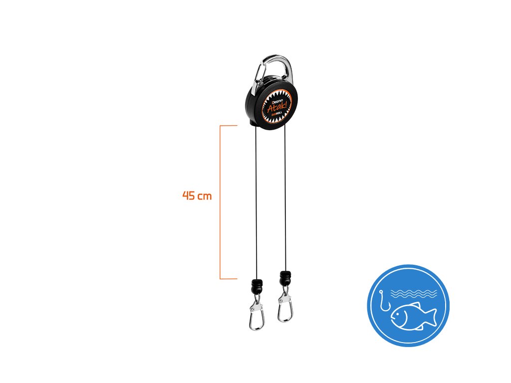 DuoROLL je dvojité jojo, které se nepochybně stane praktickým pomocníkem nejednoho příznivce přívlače. Disponuje dvěma samostatnými karabinkami, na které lze upevnit různé přívlačové příslušenství, ať už jde o kleště, peán nebo nůžky. K oblečení je DuoRoll možné uchytit pomocí pevné kovové karabinky ve vrchní části, díky které se nemusíte bát jeho ztráty během lovu. Efektní ATAK! design jen podtrhuje, pro jakou skupinu rybářů je tento produkt primárně určen. Technické parametry: Délka šňůry: 2x45cmDoplňkové parametry