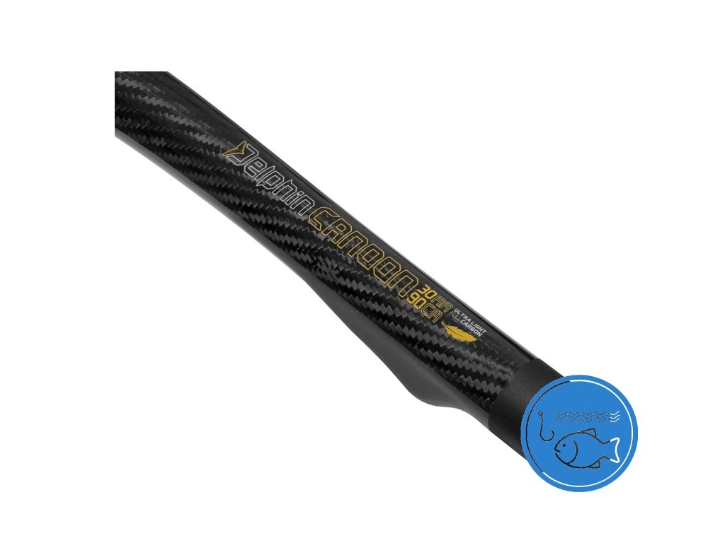 Velké úlovky si žádají špičkové vybavení! Právě takovým je vrhací tyč / kobra CANOON od značky Delphin. Tento prémiový produkt je vyroben z vysoké třídy carbon-u, což se jednoznačně podepisuje na její ultra nízké hmotnosti. Při délce 90cm a průměru otvoru 30mm váží v průměru jen cca 85g! Díky tomu výrazně odbřemení vaše rameno při zakrmování a umožní tak nahazovat delší dobu, než jste byli dosud zvyklí. Klasický, ale proporčně vyvážený tvar CANOON-u navíc významně prodlouží i vzdálenost, na kterou je možné zakrmovat. Nad rukojetí se nachází plnicí otvor pro rychlejší vkládání nástrahy. Za výkonovými parametry však nezaostává ani vizuální stránka! Tělo vrhací tyče je precizně vypracované a pod vrstvou klavírního laku se nachází 3D textura carbon-u ve spojení s decentní grafikou. Samotná rukojeť je pokryta černou matnou protiskluzovou vrstvou. Vrhací tyč má navíc pro transport v balení i EVA záslepku otvoru a zabalená je v praktickém neoprénovém pouzdře, které dostáváte k tyči grátis. Technické parametry: Délka: 90cm Průměr vrchního otvoru: 30mm Průměr otvoru nad rukojetí: 50x28mm Hmotnost: 85mmDoplňkové parametry