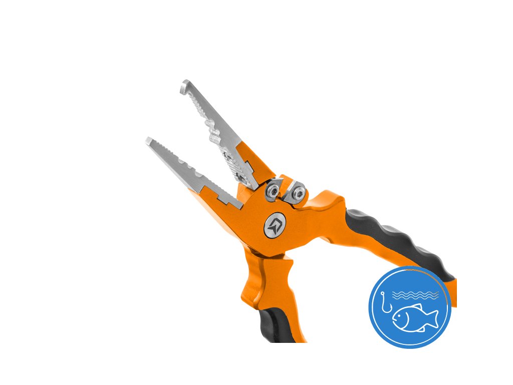 Do detailů propracované multifunkční kleště, které si bez problémů poradí s otevíráním kroužků, mačkáním krimpovacích svorek či stříháním různých vlasců a šňůr. Kromě toho mají dostatečně dlouhé čelisti na vybírání háčků z tlam dravých ryb. Jsou vyrobeny z nerezové oceli a na obou rukojetích se nachází protiskluzový gumový povrch, díky kterému se výborně drží v ruce. Kleště SpinSET jsou dodávány s praktickým černým pouzdrem, které lze snadno upevnit na opasek. Také disponují natahovacím lankem s karabinou na konci. Praktické kleště určené i pro ty nejnáročnější příznivce přívlače, to je Delphin SpinSET. Technické parametry: Celková délka: 16,5cmDoplňkové parametry