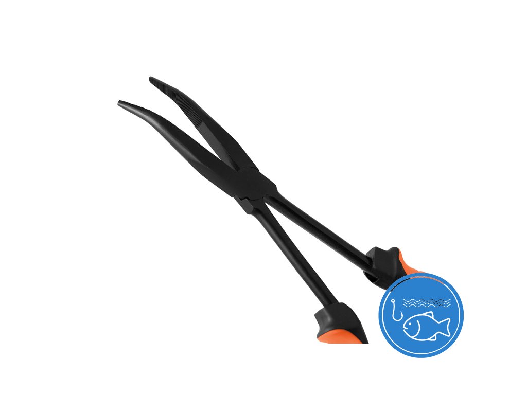 Delphin LOOONG jsou dlouhé kleště se zahnutou čelistí. Jsou určeny pro vyprošťování háčků z tlam těch největších dravých ryb, v případech, kde na to klasický peán už nestačí. Jejich délka je až 28cm. Vnitřní strana ramen kleští poskytuje dostatečně drsnou plochu pro uchopení i velkých dvojháčků a trojháčků. Jsou vyrobeny z oceli s vysokým podílem uhlíku a jejich obě rukojeti jsou vybaveny plastem oranžové a černé barvy, které jsou dobře viditelné za každých podmínek a dobře padnou do ruky. Na obou ramenech rukojeti se nacházejí otvory na provlečení šňůrky. S našimi kleštěmi LOOONG dokážete ulovenou rybu rychle a bezpečně zbavit zaseknutých háčků.Doplňkové parametry
