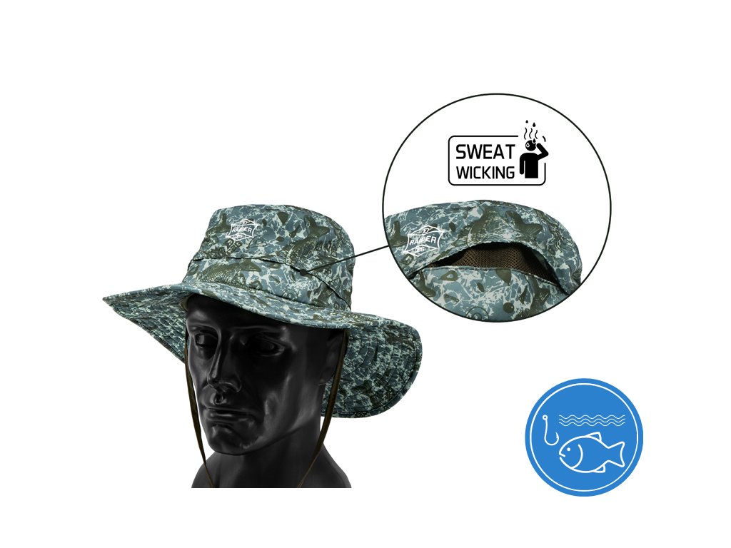 Delphin RAIDER je stylový klobouk v jedinečné C2G kamufláži, který poskytuje ideální ochranu hlavy během slunečných dnů, ať už se vydáte na ryby, lov nebo dovolenou u moře. Klobouk je vyroben z nylonového materiálu, který je z vnější strany kompletně potisknut C2G vzorem, čímž perfektně ladí s ostatními produkty z této série. Čtyři odvětrávací otvory znásobují uživatelský komfort a redukují nadbytečné pocení v oblasti hlavy. Kvůli lepšímu větrání a zabránění vniknutí hmyzu přes větrací otvory, je uvnitř našita praktická síťka. RAIDER disponuje také šňůrkou s jednobodovým stahováním, díky které vám z hlavy nespadne ani v případě silného větru. Materiálové složení: 100% nylon Průměr klobouku: 35 cm Průměr otvoru na hlavu: 19 cm Stylová patentovaná kamufláž z dílny značky Delphin pod označením C2G má mnoho podob a úhlů pohledu. Přesně tak i její název, který můžeme volně přeložit jako Carpath 2. generace, což přímo odkazuje na jejího předchůdce, ale můžeme ho číst i jako Carpath to Green, tedy přechod myšlenky Carpathu do zelené barvy. Její jedinečnost a nezaměnitelnost spočívá v prvcích, ze kterých je vytvořena. Na první dojem jde o kamufláž tvořenou třemi různými odstíny zelené. Všechno se však změní při detailnějším pohledu, kdy si všimnete siluety kaprů, komponent kaprařské montáže a log značky Delphin spolu s označením C2G. Díky tomuto neopakovatelnému provedení se vaše rybářská výbava okamžitě stane jedinečnou a maximálně originální.Doplňkové parametry