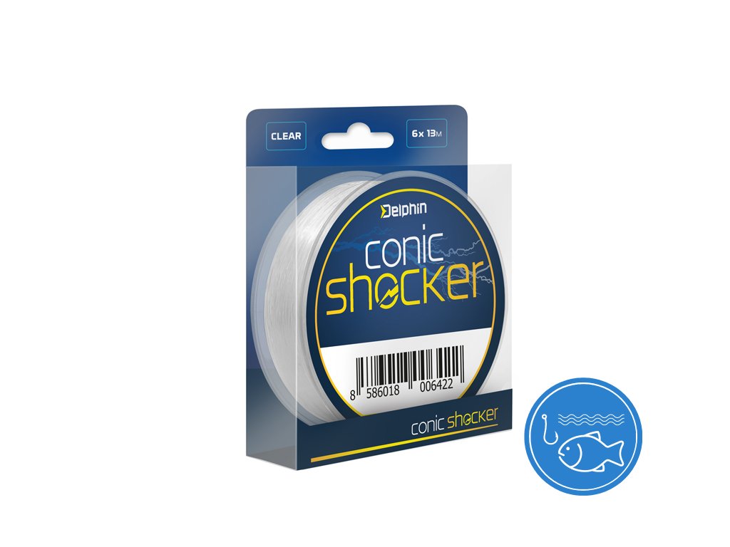 Delphin Conic SHOCKER je kónický šokový vlasec, díky kterému nahazování na velké vzdálenosti nabývá nového rozměru! Podstata kónicky zúženého vlasce spočívá v postupně se měnícím průměru, díky čemuž je možné spojit jej s kmenovým vlascem pomocí velmi malého uzlíku. Právě to je jedním z klíčových parametrů pro mnohem snazší odvíjení vlasce z cívky a pro hladký průchod očky. Na opačném konci je však dostatečně tlustý a pevný, aby bez problémů odolal překážkám pod vodní hladinou či výpadům velkých ryb. Zároveň se do prutu můžete opřít plnou parou, bez obav o odtržení koncové sestavy při krátkodobém přetížení během nahazování. Kombinace zmíněných faktorů zaručuje, že při nahazování budete schopni dopravit své montáže podstatně dále než při použití klasické „šokovky“ se stejným průměrem po celé délce. V balení na cívce se nachází navinutých 6 kusů návazců o délce 13 metrů, které jsou vždy označeny nálepkou.ąDoplňkové parametry