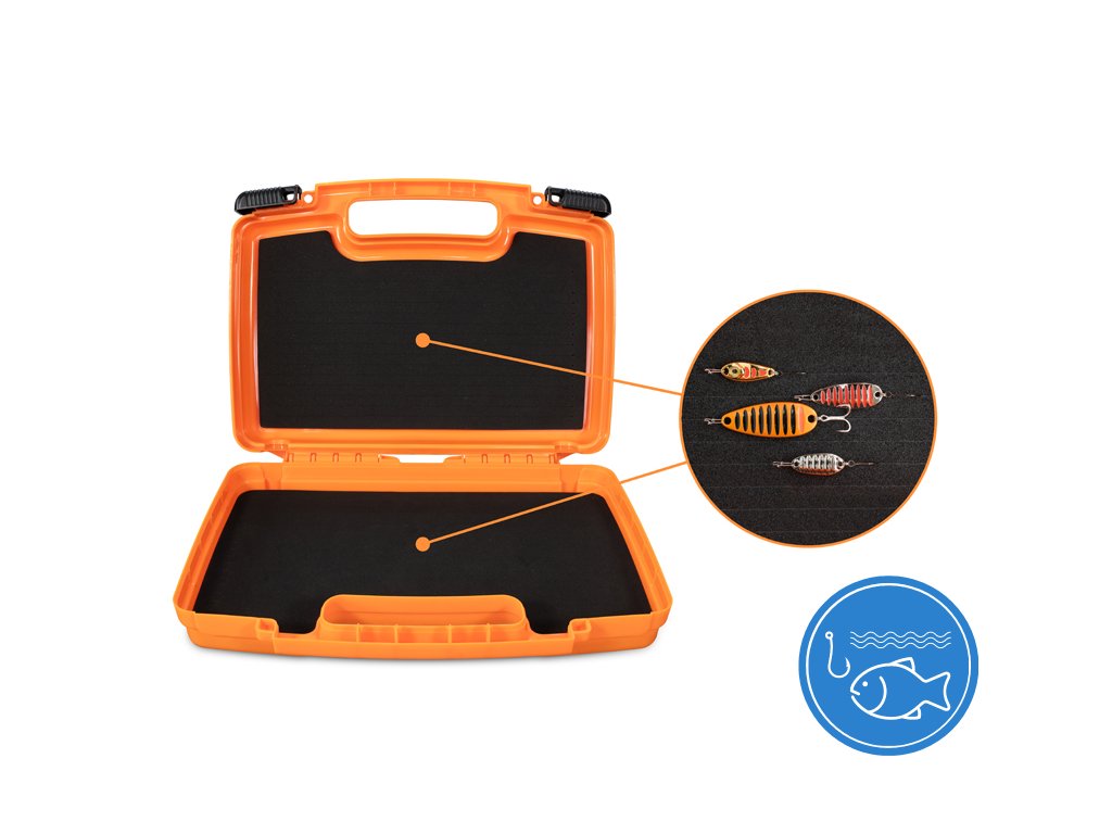 LureBOX MEGA je praktický kufřík pro uschování přívlačových nástrah, komponentů montáže a různých doplňků. Velkou výhodou je vnitřní výplň z EVA pěny. V pěně jsou umístěny zářezy pro snazší uschování napíchnutých gumových nástrah na jigách. Stačí jednoduše jigový háček zatlačit do zářezu, nástraha zůstane nepoškozená a pěna ochrání hrot háčku proti zatupení. Také je možné krabici použít jako odkládací prostor pro TWISTO systémy bez nechtěného motání. Velmi jednoduše lze v krabici uložit i samostatné háčky, díky čemuž budete mít vše potřebné připravené k lovu. Vyrobena je z oranžového neprůhledného plastu, který redukuje možnost koroze v případě uložení již použitých komponentů. Technické parametry: Rozměr: 365x280x90mm Výplň krabice: EVA pěnaDoplňkové parametry