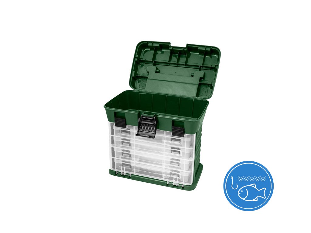 Delphin TBX MegaCase Clip je zajímavě řešený kufřík v kombinaci s prostorem pro 4 plastové krabičky. Velmi dobře poslouží pro uložení nástrah nebo ostatního rybářského příslušenství. Uzavírá se jedním plastovým klipem, který pevně drží vrchní výklopný díl. Pod ním se nachází dostatečně velký úložný prostor na odkládání všeho, co rybář potřebuje. V přední části se nachází výklopný díl z průhledného materiálu. Jím se dostanete ke 4 stejně velkým plastovým krabičkám, které jsou součástí kufříku. Krabičky obsahují plastové příčky, aby si každý rybář mohl přihrádky v krabičkách přizpůsobit podle vlastních představ. Je dodáván v kombinaci barev tmavozelená s transparentním poklopem. Parametri tehnici: Dimensiuni: 290x190x265mm Numărul compartimentelor fixe: 5 Dimensiunile compartimentului: 1x(26,5x16x7cm), 4x cutie de plastic cu dimensiunile de 23,5x12,7x3,2cm cu de 3x compartimente interne 22,5x3,5x2,7cm şi 10x despărţitoare Numărul cutiilor introductibile: 4Doplňkové parametry