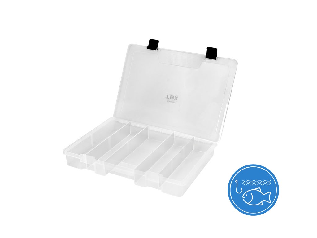 TBX ONE Clip je rada multifunkčných krabičiek určených na uloženie rybárskeho príslušenstva. Vyrobená je z transparentného plastu, takže máte vždy prehľad o uložených veciach vo vnútri krabičky. Vybavená je praktickými externými klipmi z plastu. Technické parametre: Rozmer: 350x250x48mm Počet pevných priehradiek: 5 Rozmer priehradky: 1x(8,5x21,5x4,2cm), 4x(22,5x6x4,2cm) Počet vkladateľných priečinkov: 5Doplňkové parametry