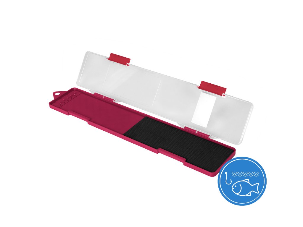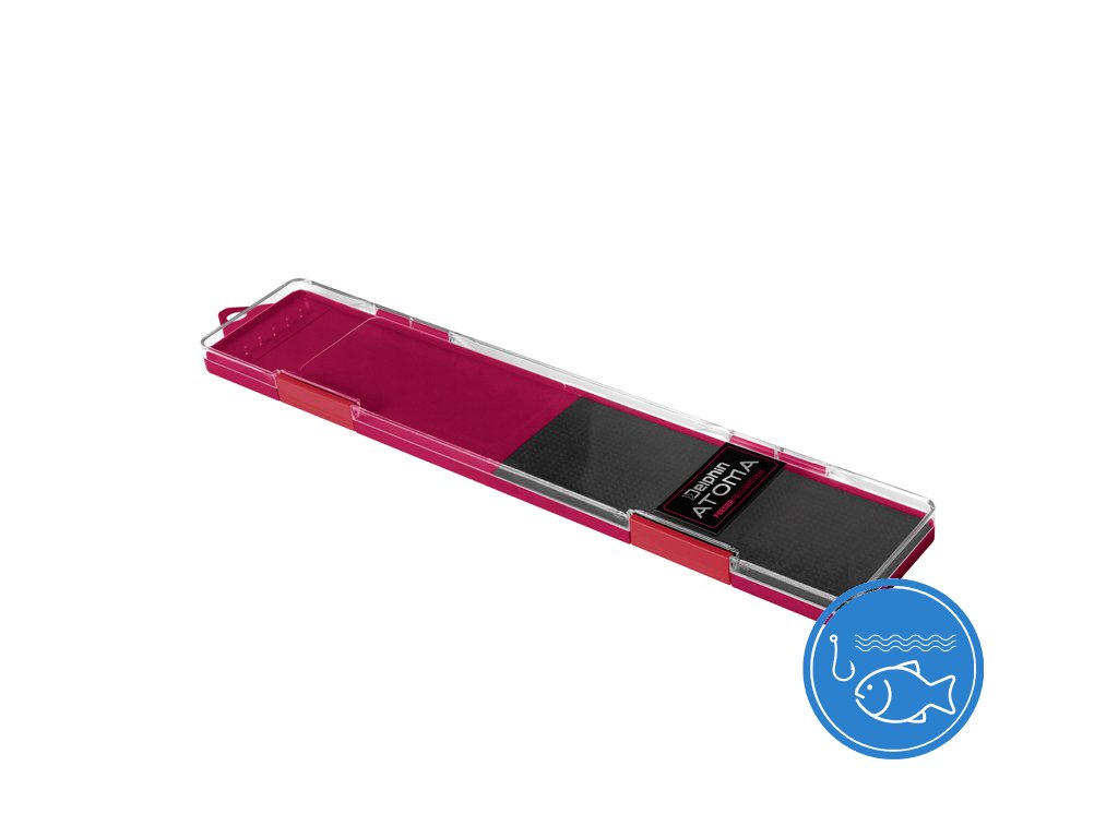 Box na feederové návazce Delphin ATOMA je praktická pomůcka na odkládání hotových návazců, která by neměla chybět ve výbavě žádného rybáře. Tento plochý box je vyroben z plastu. Jeho spodní část je vínové barvy, doplněná o plastové výběžky, na které upevníte návazce a o EVA pěnu, kde můžete zapíchnout háčky. Vrchní část je z průhledného plastu, abyste měli dokonalý přehled o umístění návazců. Uzavírá se dvěma klipy.Doplňkové parametry