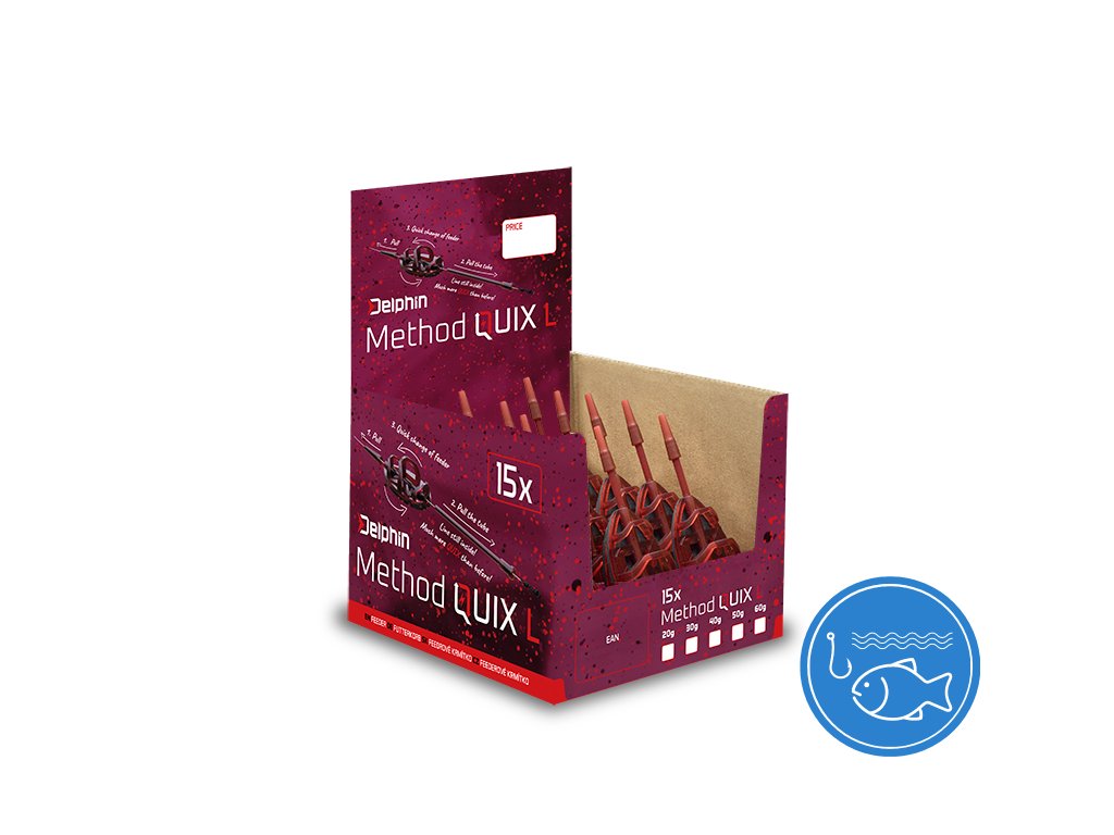 Špičkové method feederové krmítko, navržené vývojovým týmem značky Delphin. Už na první pohled se vyznačuje specifickým tvarem žeber, díky kterému krmivo během nahazování výborné drží na krmítku a po dopadu na dno se snáze uvolňuje. Velkou výhodou krmítka QUIX je možnost snadné výměny olověné části spolu s tělem. Umožňuje to vyjímatelná trubička a drážka na olověné části. Po vysunutí trubičky z těla krmítka jej stačí složit z vlasce a použít jiné s rozdílnou hmotností. Taková variabilita vám poskytne možnost přizpůsobení se různým podmínkám během lovu, bez nutnosti zdlouhavého převazování koncové sestavy. Tvar olověné zátěže spolu s výstupky zajišťuje nejen výborné rozložení hmotnosti, ale také perfektní stabilizaci na dně v lovném místě. Díky aerodynamickému tvaru a prodloužené trubičce je s krmítkem možné dosahovat velké vzdálenosti během nahazování. Punc originality dodává produktu typická bordó barva a černé závaží s červenými skvrnami. V základu je krmítko dodáváno s rychlovýměnným obratlíkem s pojistkou a gumičkou proti zamotání. Technické parametry: krmítko 55x30x25mm délka trubičky 85mmDoplňkové parametry