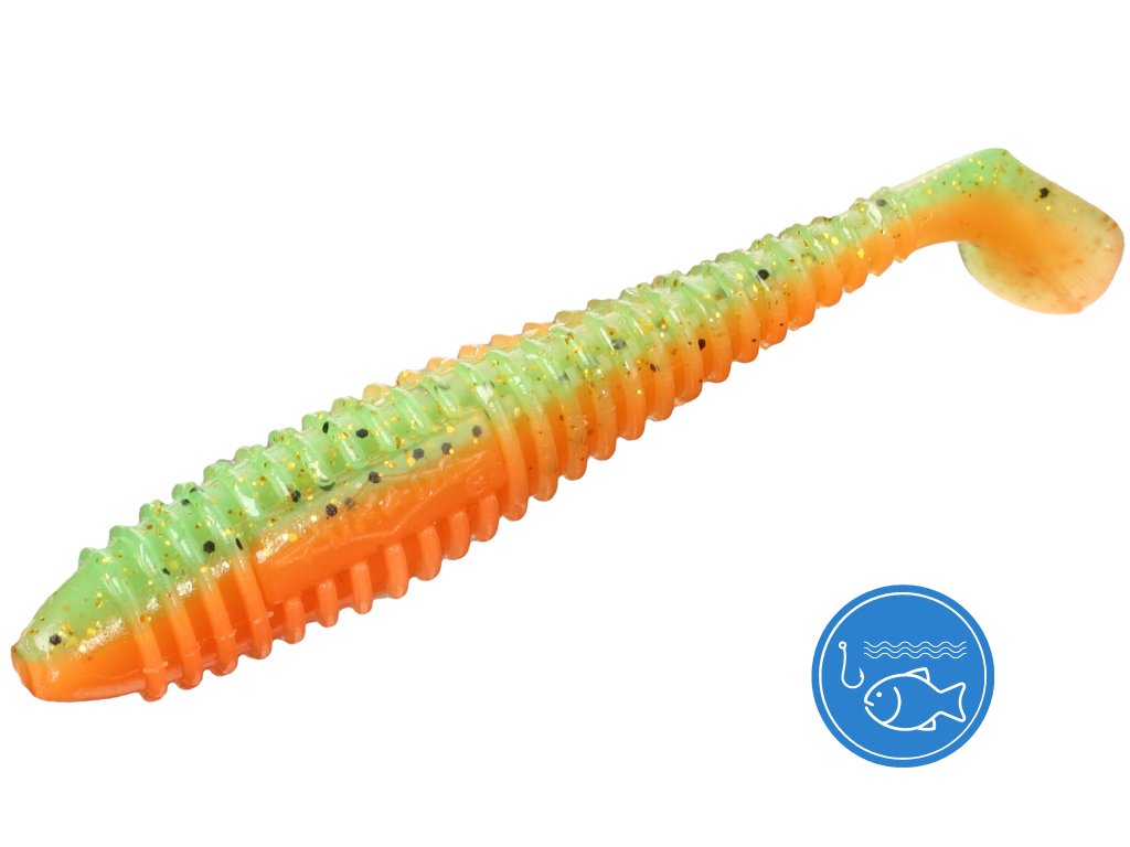 Účinná zbraň na všechny velké dravé ryby z extraměkkého materiálu! Mimořádně měkký ripper s příčným žebrováním pro přídavné vibrace a tenké tělo, který je vybavený super tenkým ocáskem pro extrémně dobrý chod. Ideální i na závody! Nástraha MIKADO SPEEDO se vyznačuje mimořádně dobrým chodem i při velmi pomalém tažení a při propadu. Chod byl docílen jednak zeslabením tělíčka, které je opticky zvětšeno žebrováním, které navíc při tažení jemně vibruje a velmi slabým ocáskem a kopýtkem. Díky extraměkkému materiálu ryba nástrahu nevyplivne a dále ji polyká! To vše a propracované barevné provedení je pro dravce terčem, kteří Vaše nástrahy nenechají bez povšimnutí proplout!Doplňkové parametry