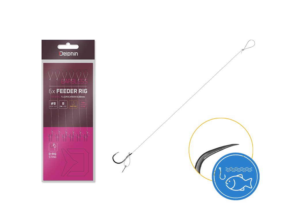 Delphin FLR D-rig zhotovený z fluorocarbonu je feederový návazec, který je navázán jako tzv. D-rig a je ukončen trnem. Jsou to velmi praktické hotové návazce, které umožní rybářům okamžitý lov či výměnu návazce bez zdlouhavého vázání. Na návazci je použit kvalitní háček typu SMUTER(B-LESS).Doplňkové parametry