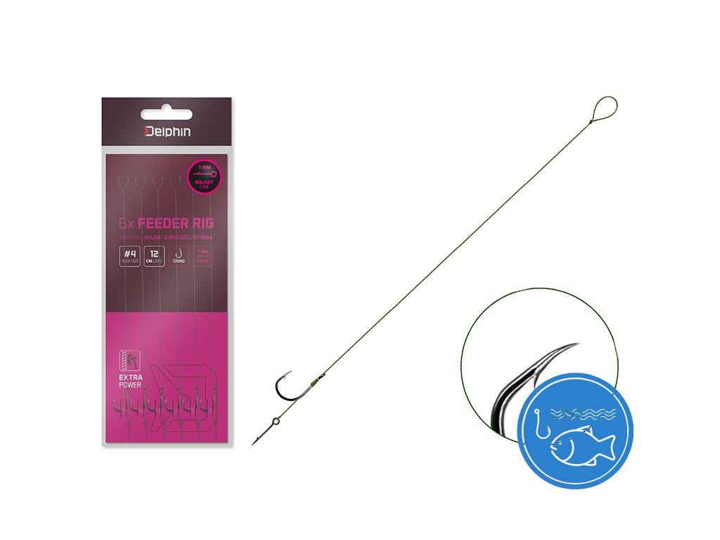 Delphin NOLIMIT STING zhotovený z 15lbs šňůry je feederový návazec, který je pod háčkem ukončen trnem. Jsou to velmi praktické hotové návazce, které umožní rybářům okamžitý lov či výměnu návazce bez zdlouhavého vázání. Na návazci je použit kvalitní háček typu CHINU(BARB) ve velikosti 6 nebo 4. Díky použití 15 lbs splétané šňůry NOLIMIT a většímu háčku je návazec uzpůsoben k lovu větších kaprovitých ryb method feederovou technikou.Doplňkové parametry